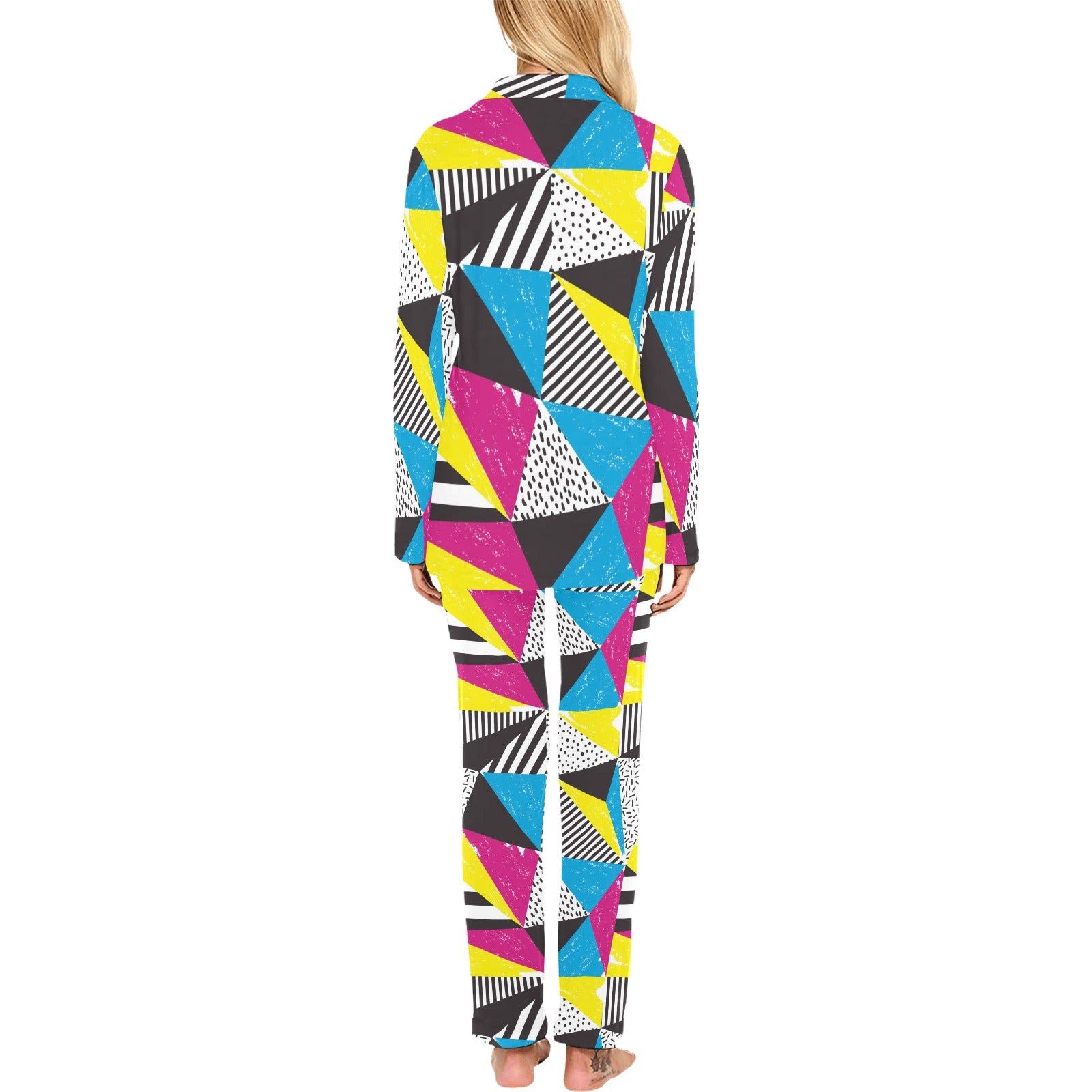 80s Pattern Print Design 2 Women's Long Pajama Set