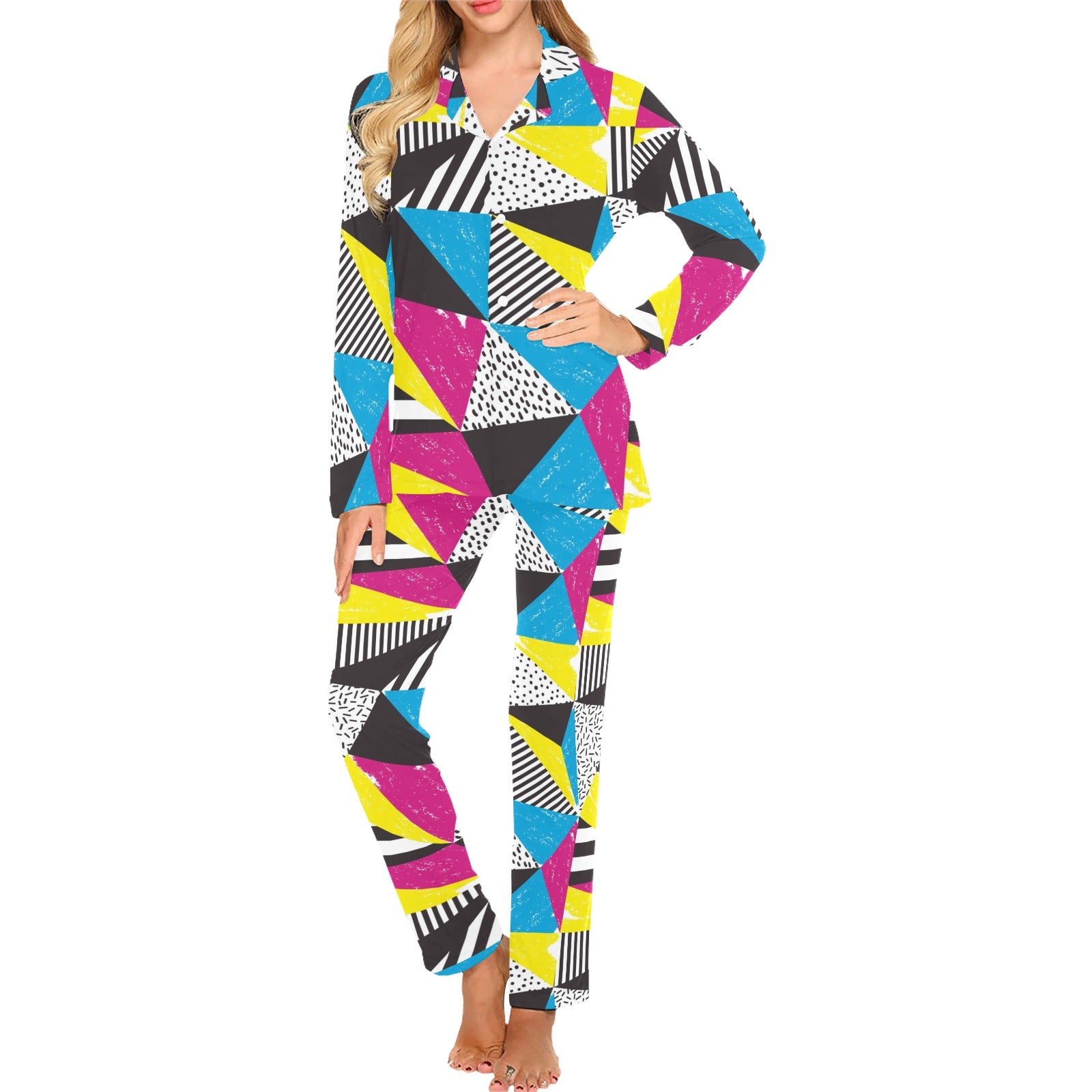 80s Pattern Print Design 2 Women's Long Pajama Set Made to Order Item. It is hand-cut and sewn just for your order! This process starts as soon as your order is placed and may have a processing time of 5-9 business days before it ships.