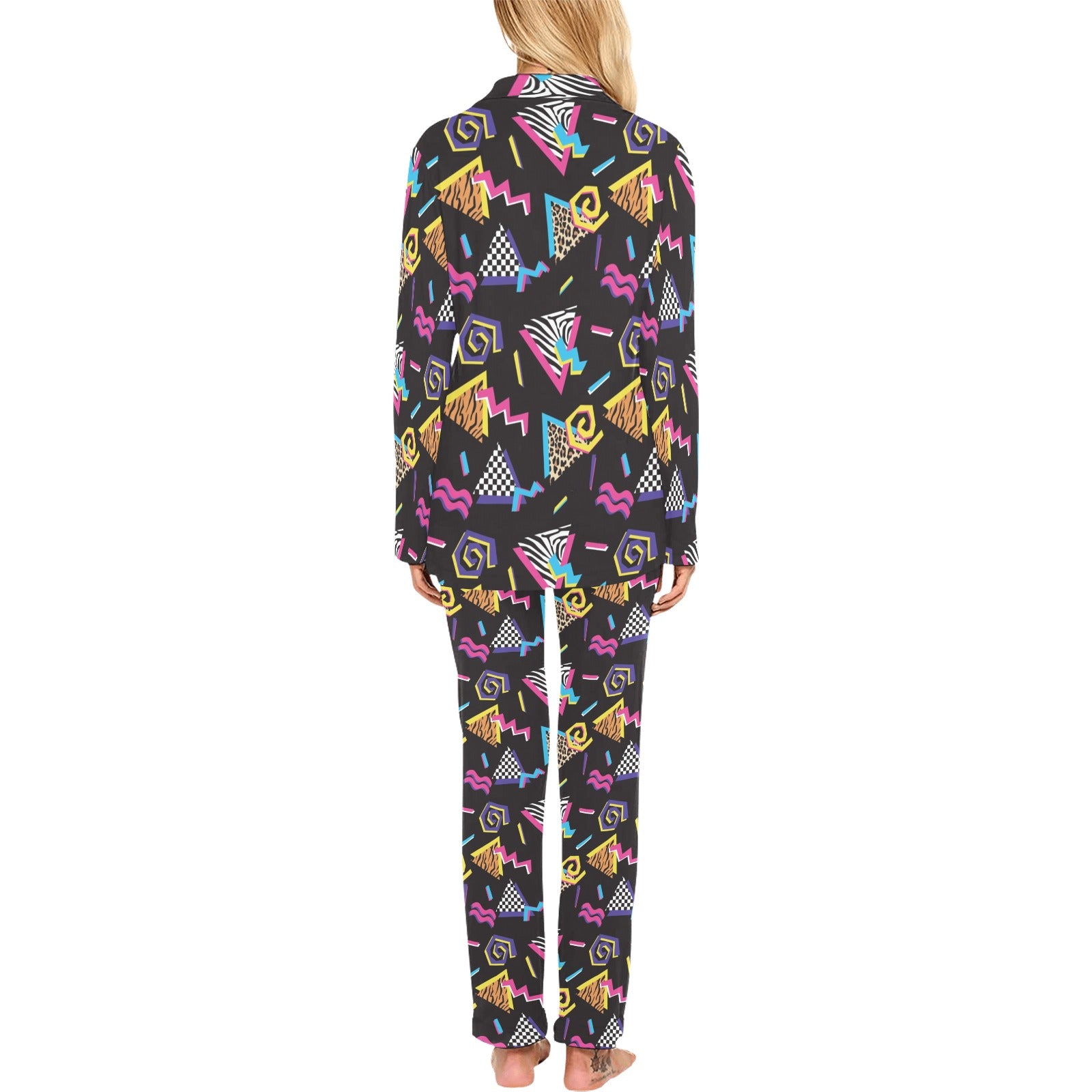 80s Pattern Print Design 3 Women's Long Pajama Set