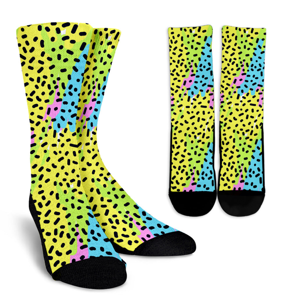 90s Pattern Print Design 2 Crew Socks Made to Order Item in the USA 🇺🇸. It is hand-cut and sewn just for your order! This process starts as soon as your order is placed and may have a processing time of 3-7 business days before it ships.