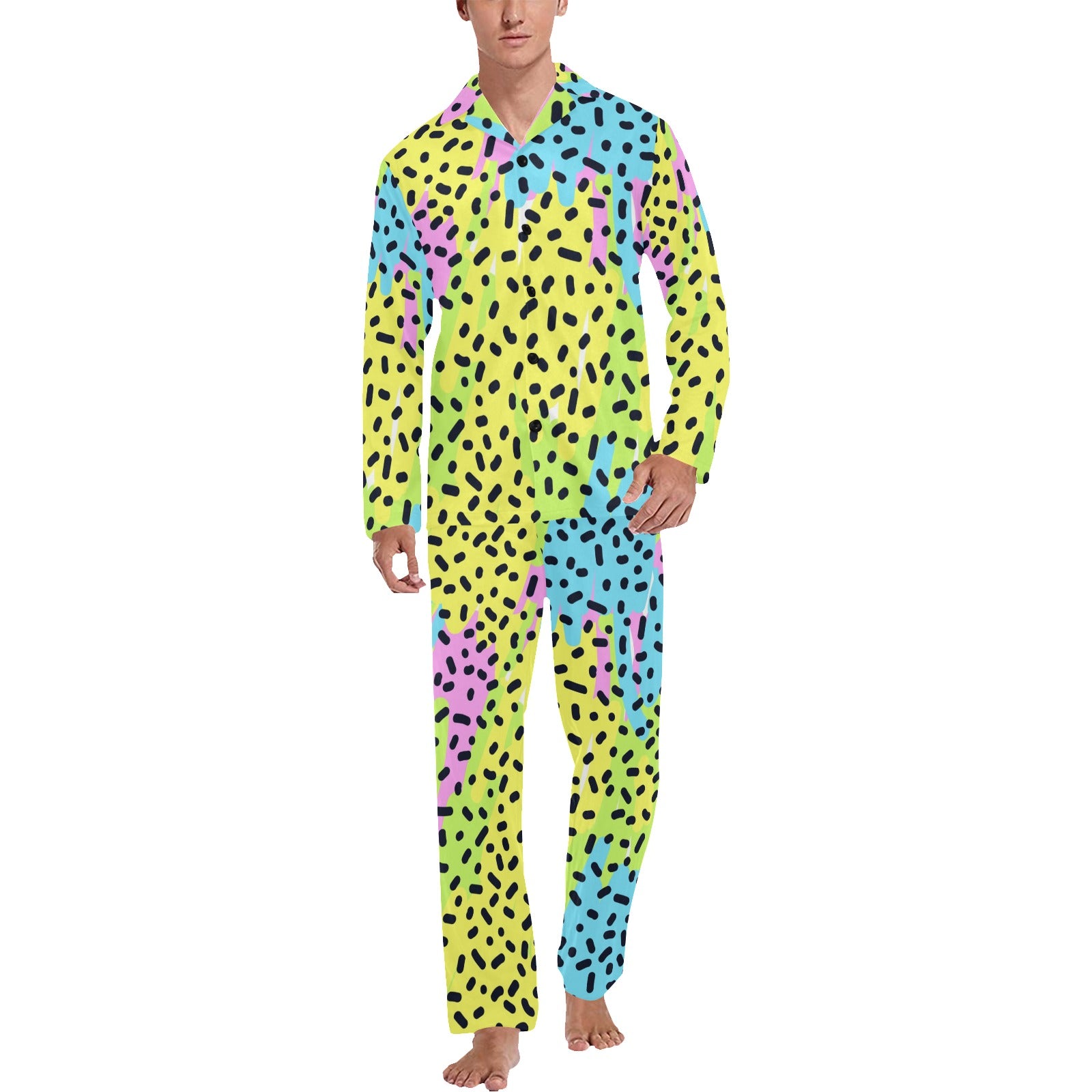 90s Pattern Print Design 2 Men's Long Pajama Set custom-made-to-order and handcrafted to the highest quality standards.