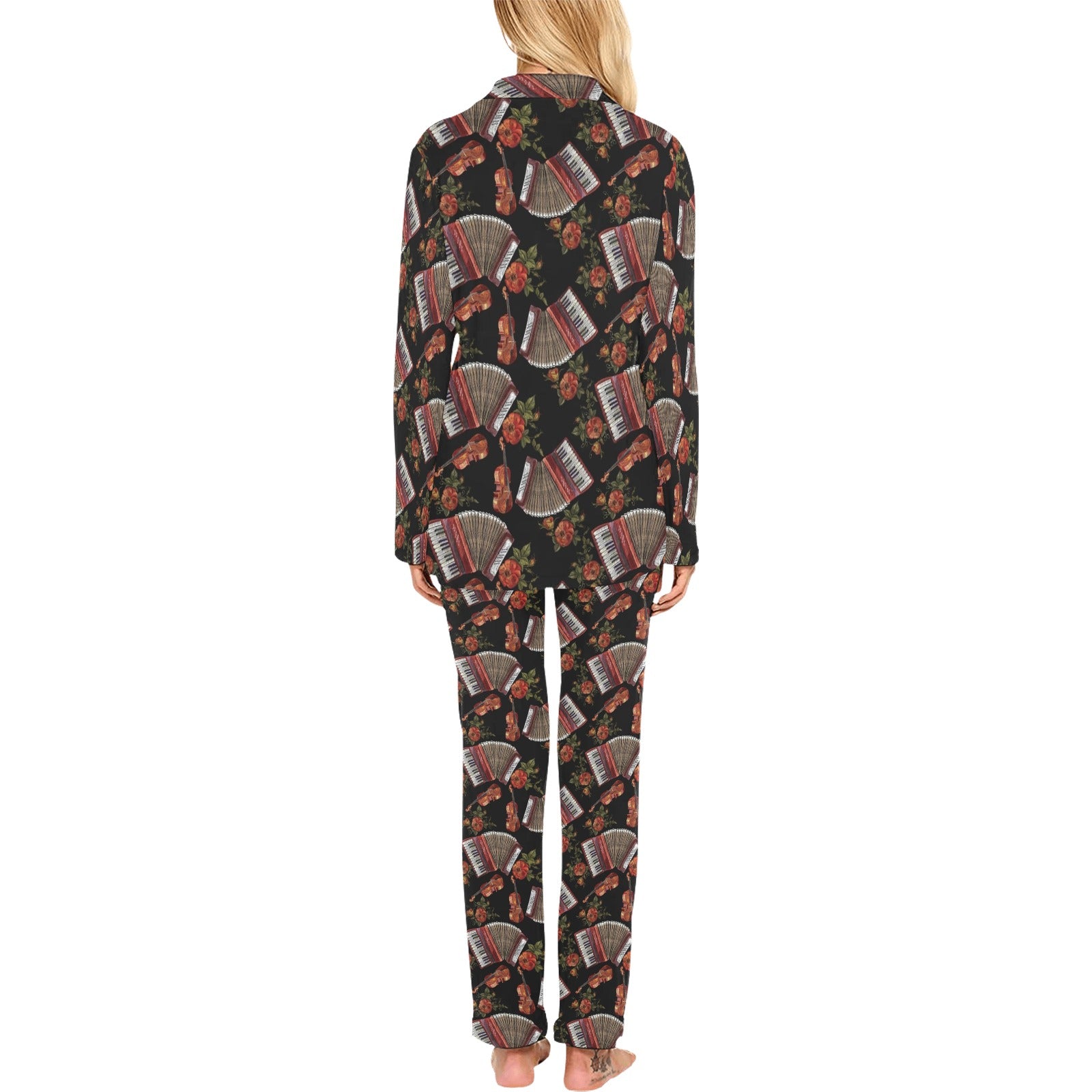 Accordion Print Design LKS403 Women's Long Pajama Set Made to Order Item. It is hand-cut and sewn just for your order! This process starts as soon as your order is placed and may have a processing time of 5-9 business days before it ships.