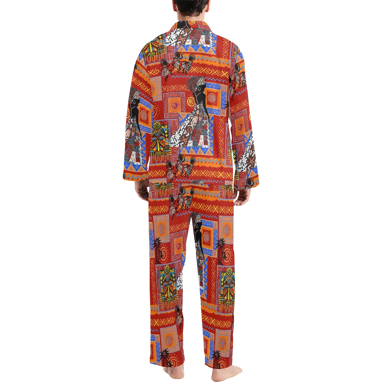 African Print Pattern Men's Long Pajama Set Made to Order Item. It is hand-cut and sewn just for your order! This process starts as soon as your order is placed and may have a processing time of 5-9 business days before it ships.
