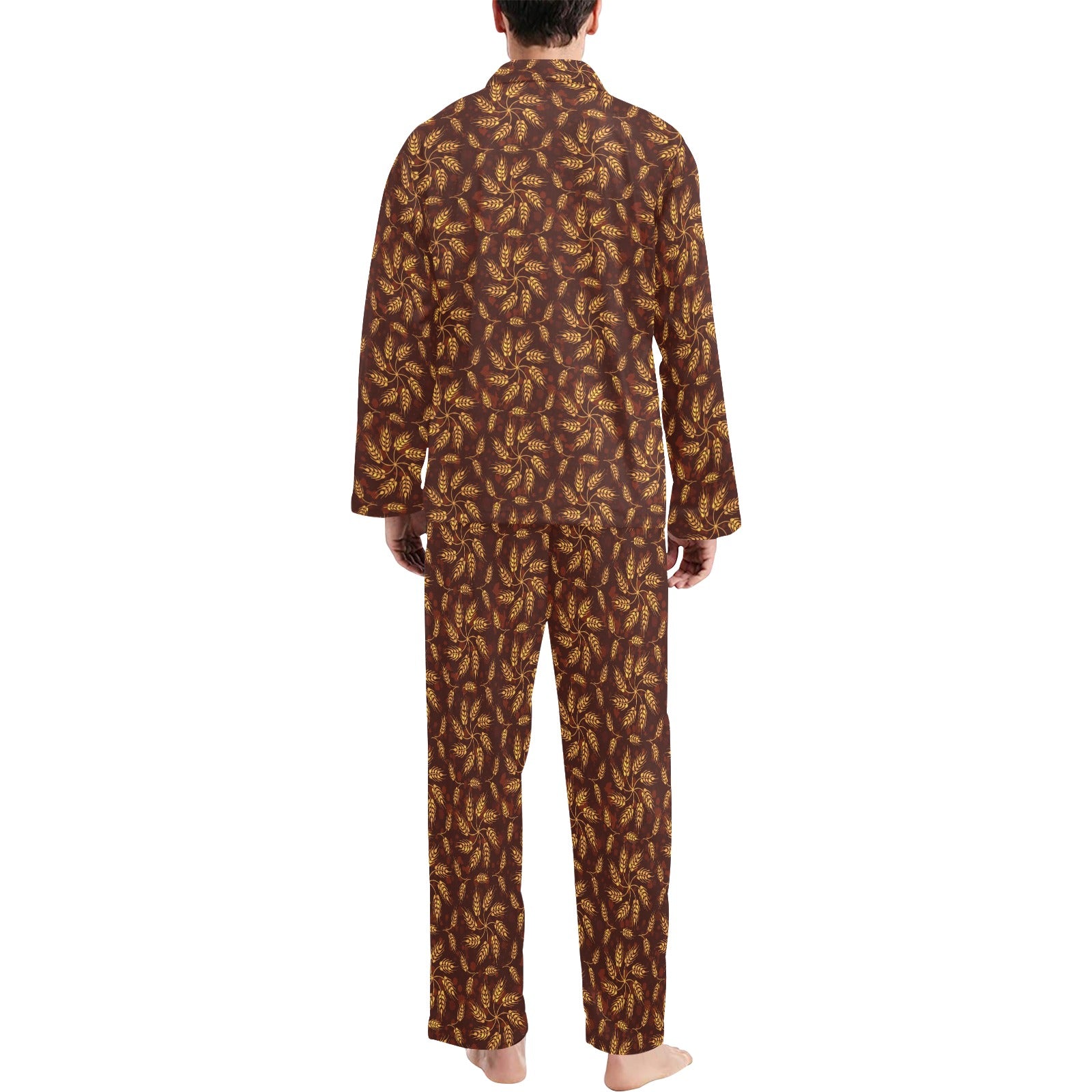 Agricultural Brown Wheat Print Pattern Men's Long Pajama Set