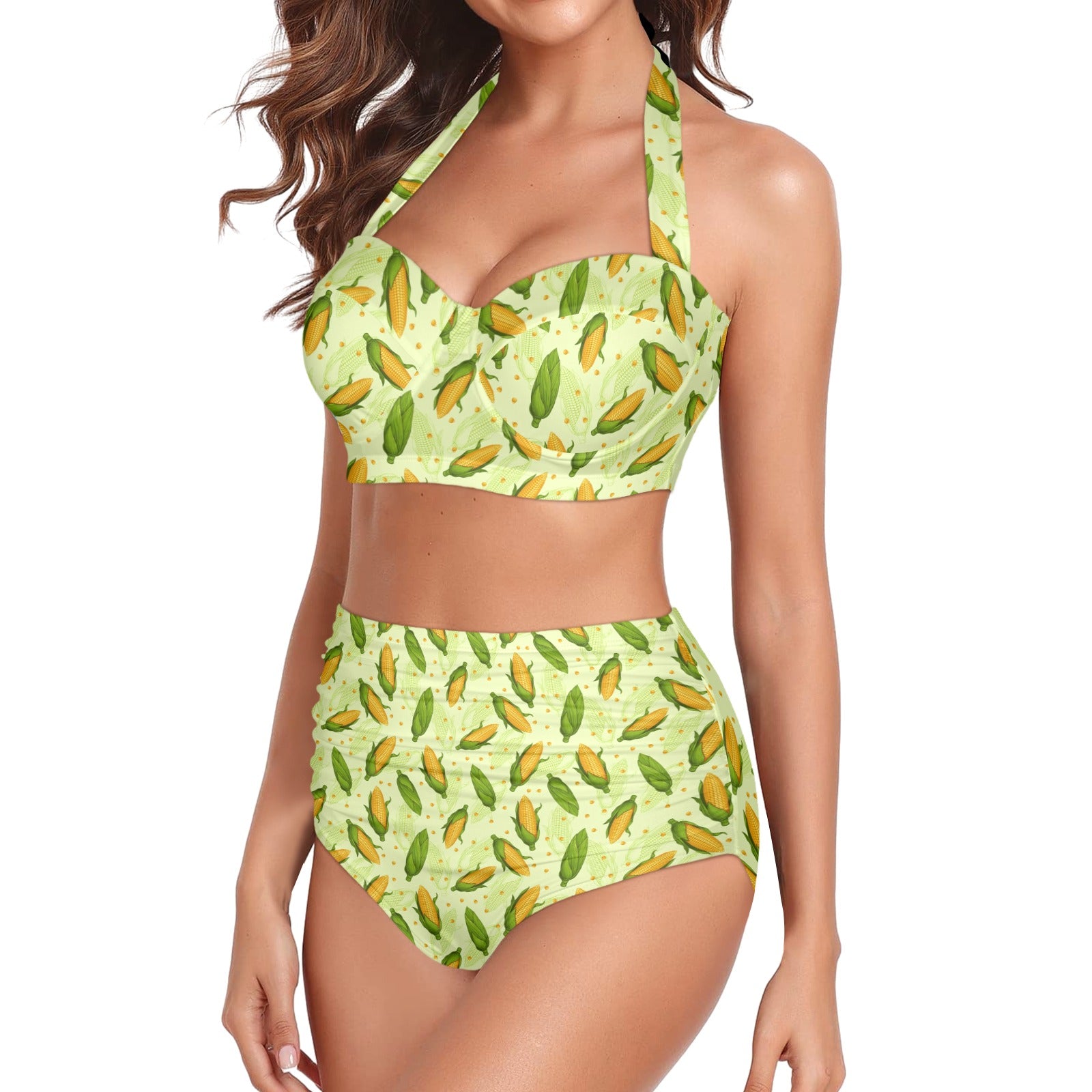 Agricultural Fresh Corn cob Print Pattern Halter Neck Bikini Swimsuit made-to-order and handcrafted to the highest quality standards.