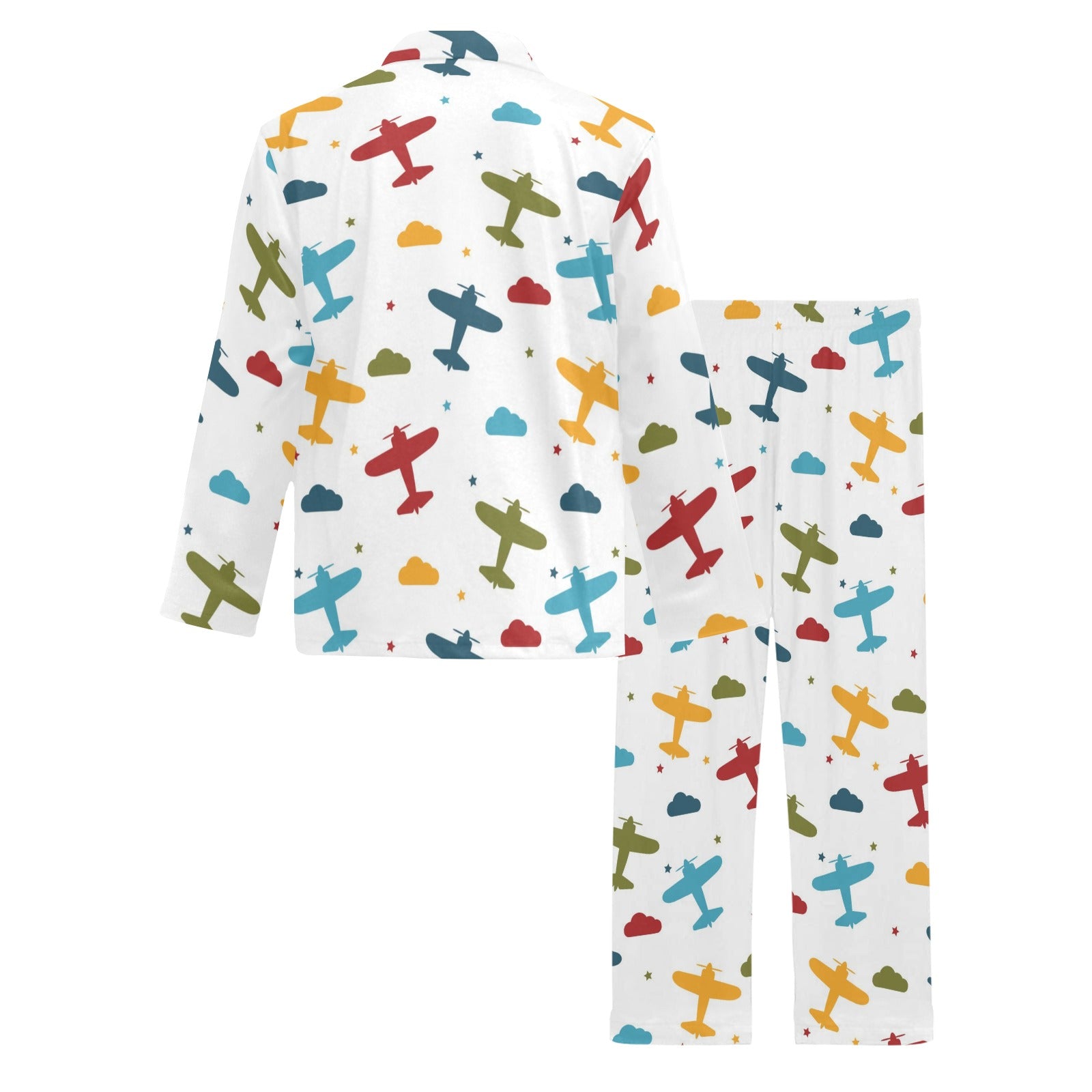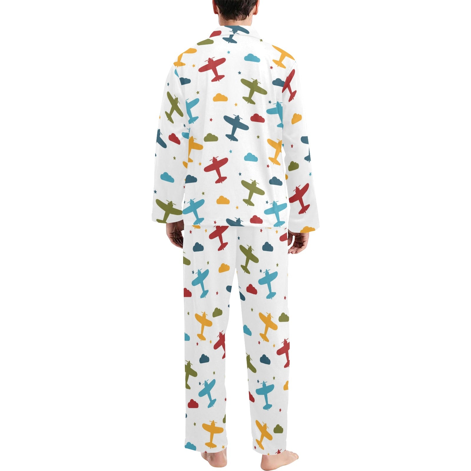 Airplane Pattern Print Design 06 Men's Long Pajama Set