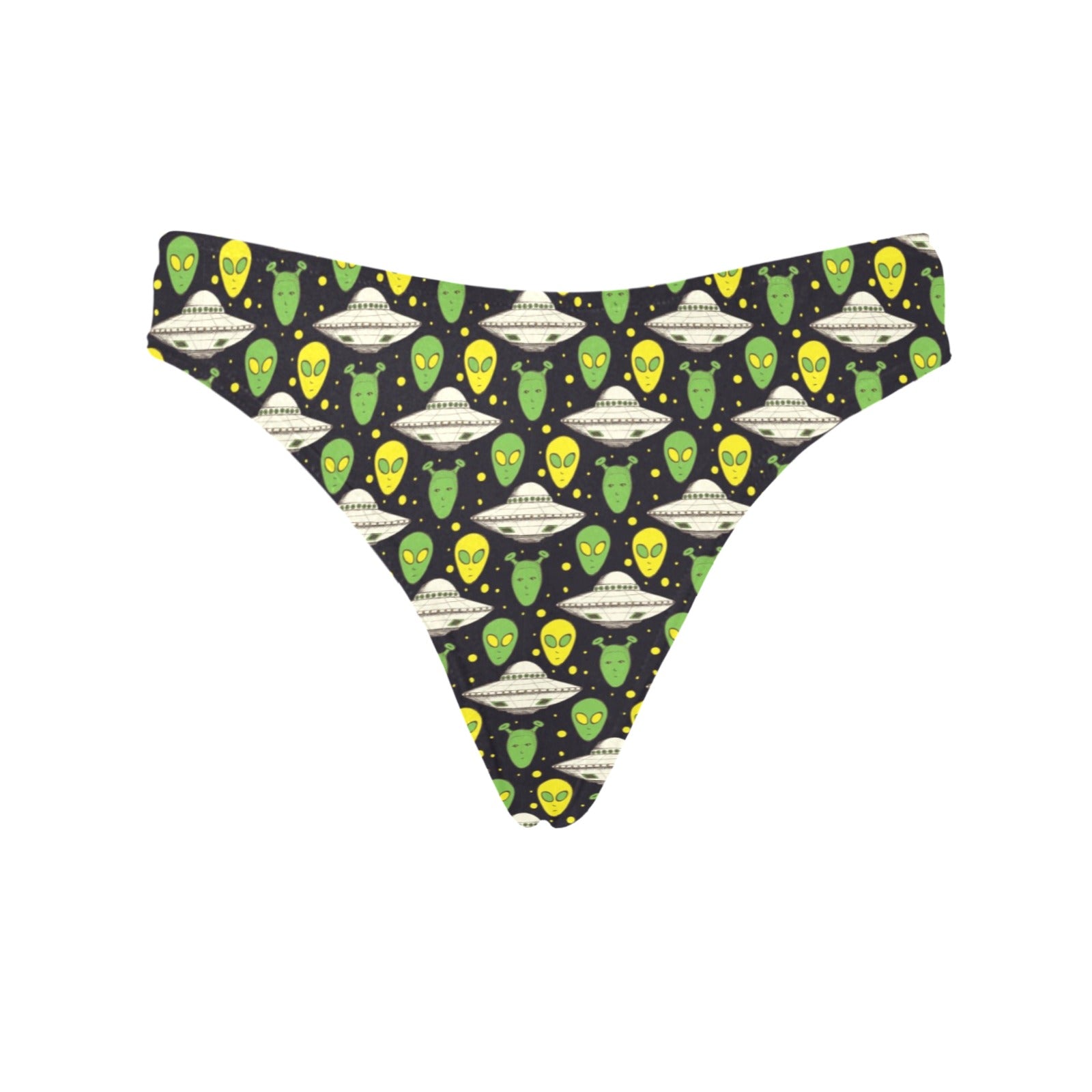 Alien UFO Pattern Women's Thongsis custom-made-to-order and handcrafted to the highest quality standards.