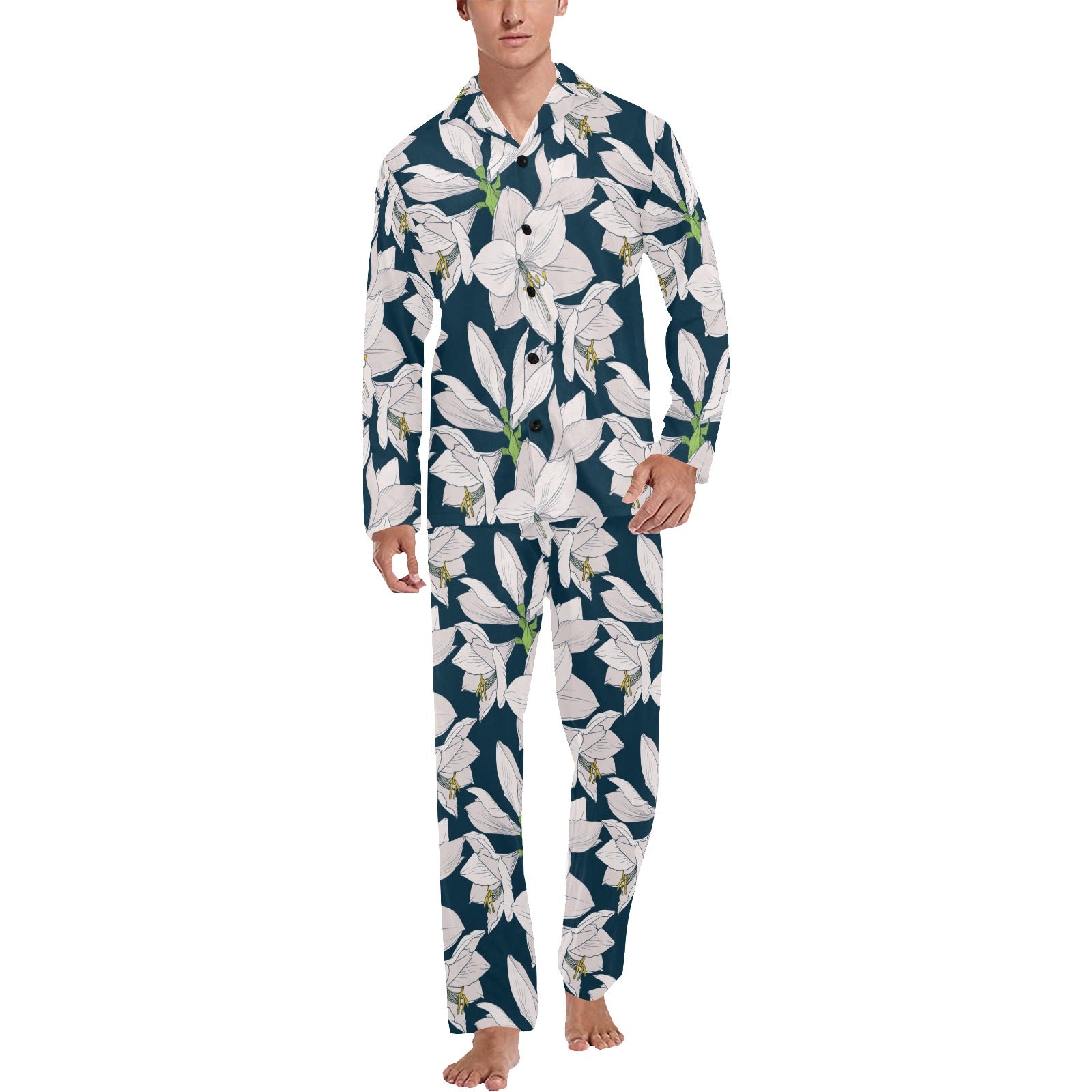 Amaryllis Pattern Print Design 01 Men's Long Pajama Set