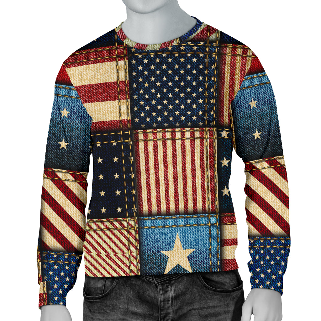 American flag Patchwork Design Men Long Sleeve Sweatshirt