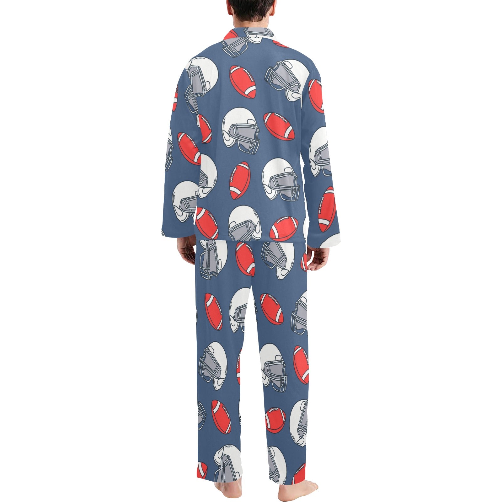 American Football Helmet Design Pattern Men's Long Pajama Set custom-made-to-order and handcrafted to the highest quality standards.