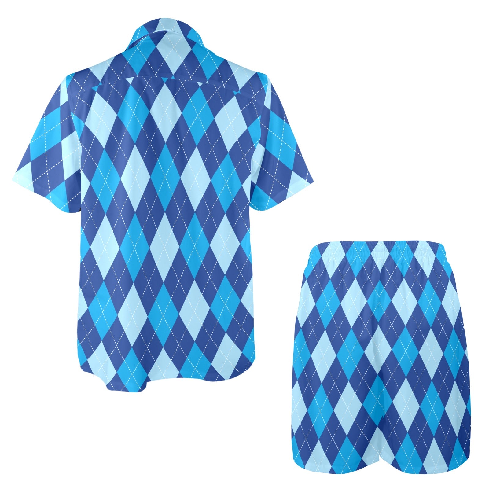Argyle Blue Pattern Print Design 02 Men's Beach Shirt and Shorts Set