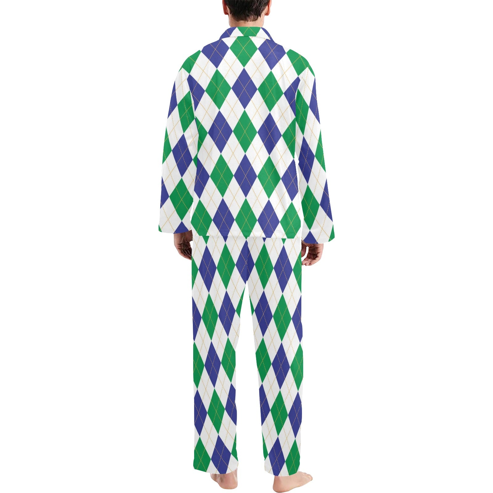 Argyle Green Blue Pattern Print Design 03 Men's Long Pajama Set custom-made-to-order and handcrafted to the highest quality standards.