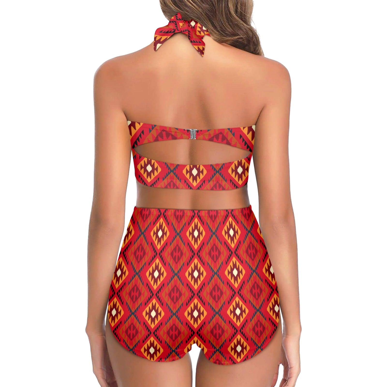 Aztec Pattern Print Design 06 Halter Neck Bikini Swimsuit made-to-order and handcrafted to the highest quality standards.