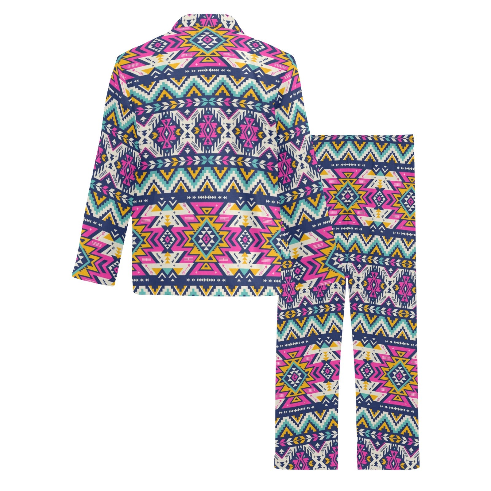 Aztec Pink Geometric Print Pattern Men's Long Pajama Set custom-made-to-order and handcrafted to the highest quality standards.