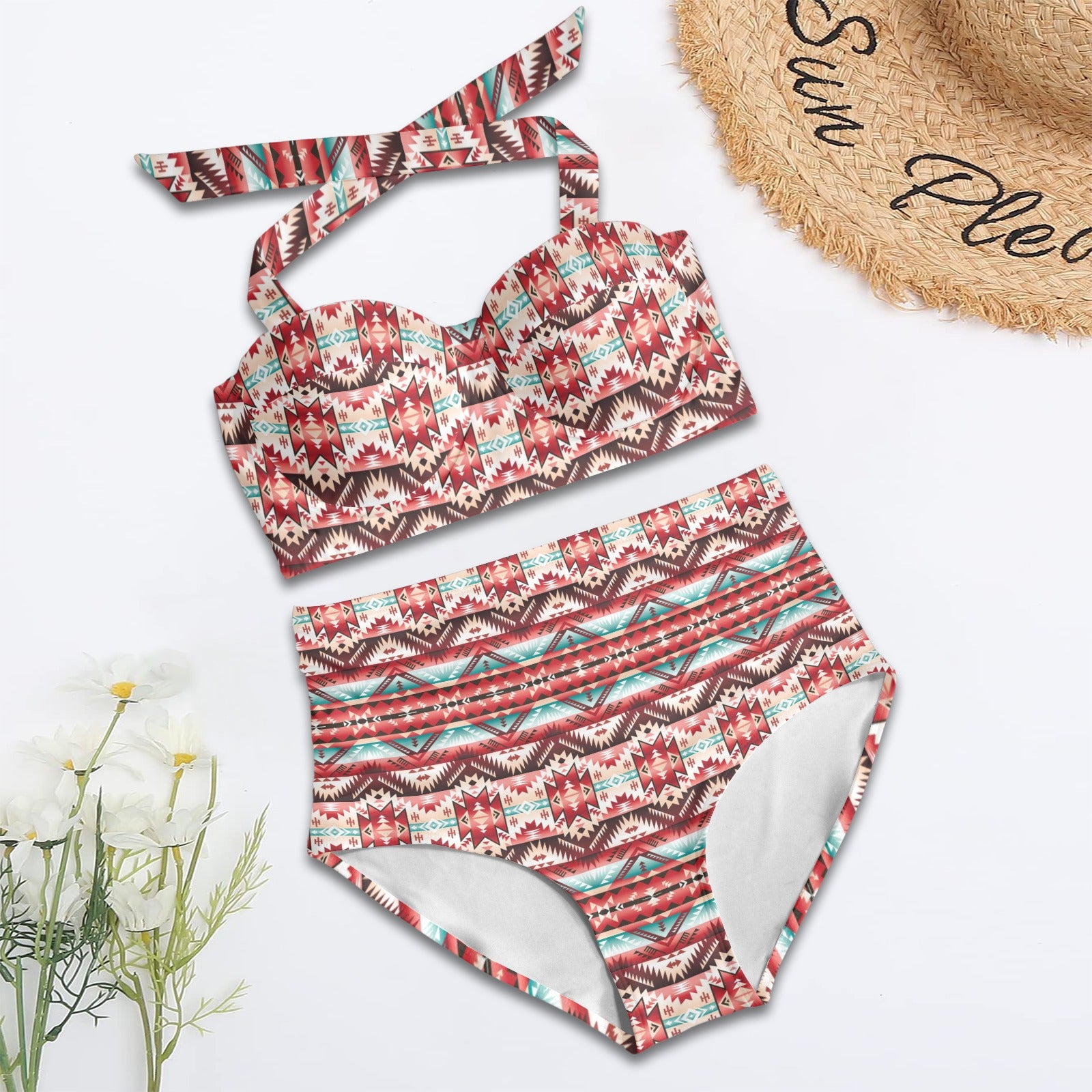 Aztec Western Style Print Pattern Halter Neck Bikini Swimsuit