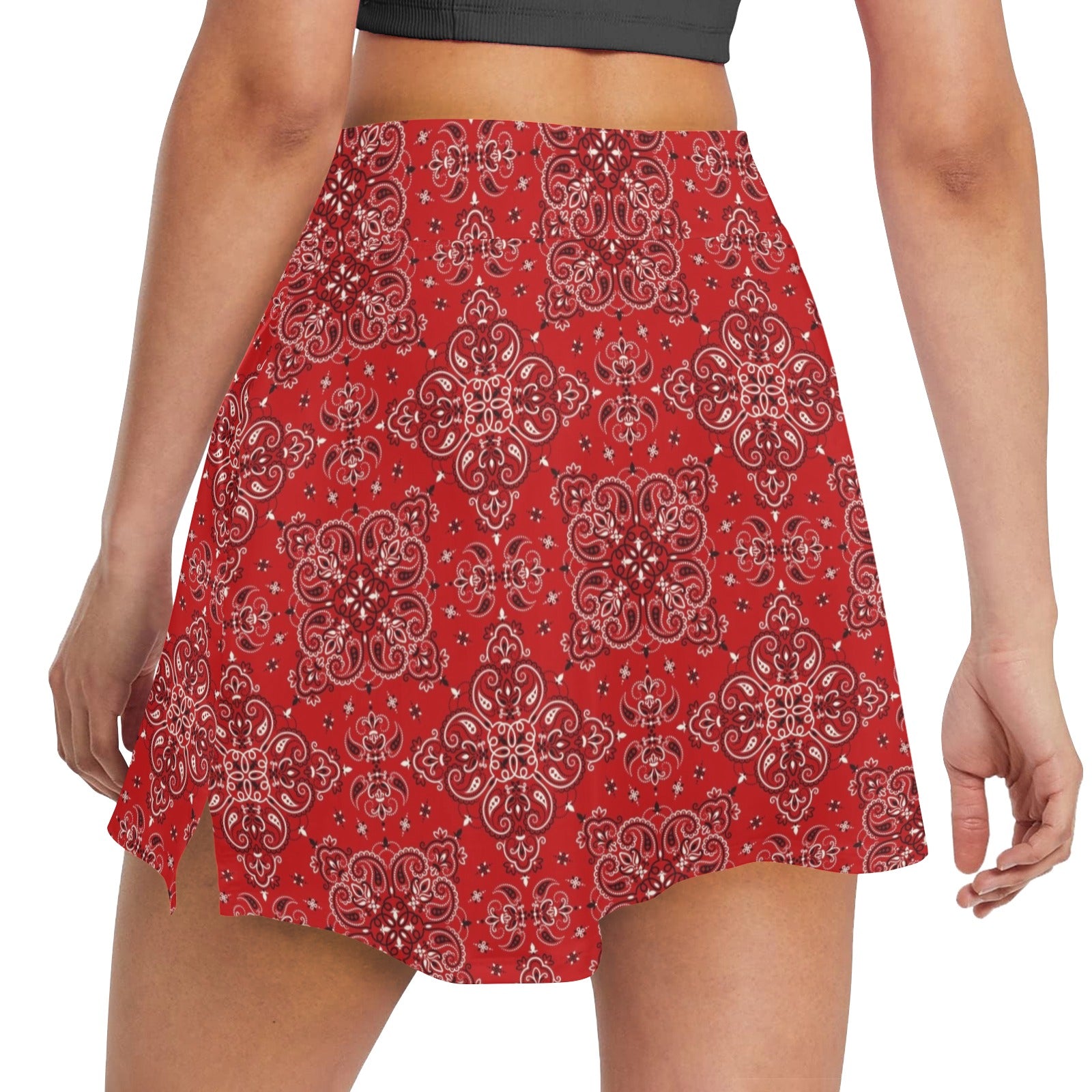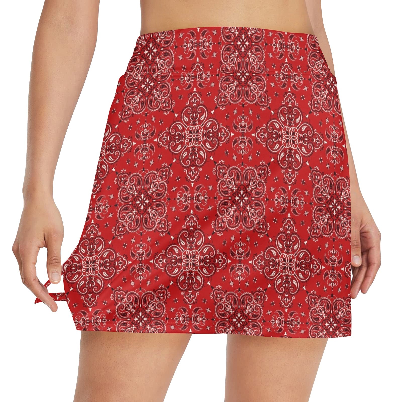 Bandana Red Pattern Print Design LKS3010 Women's Golf Skirt with Pocket