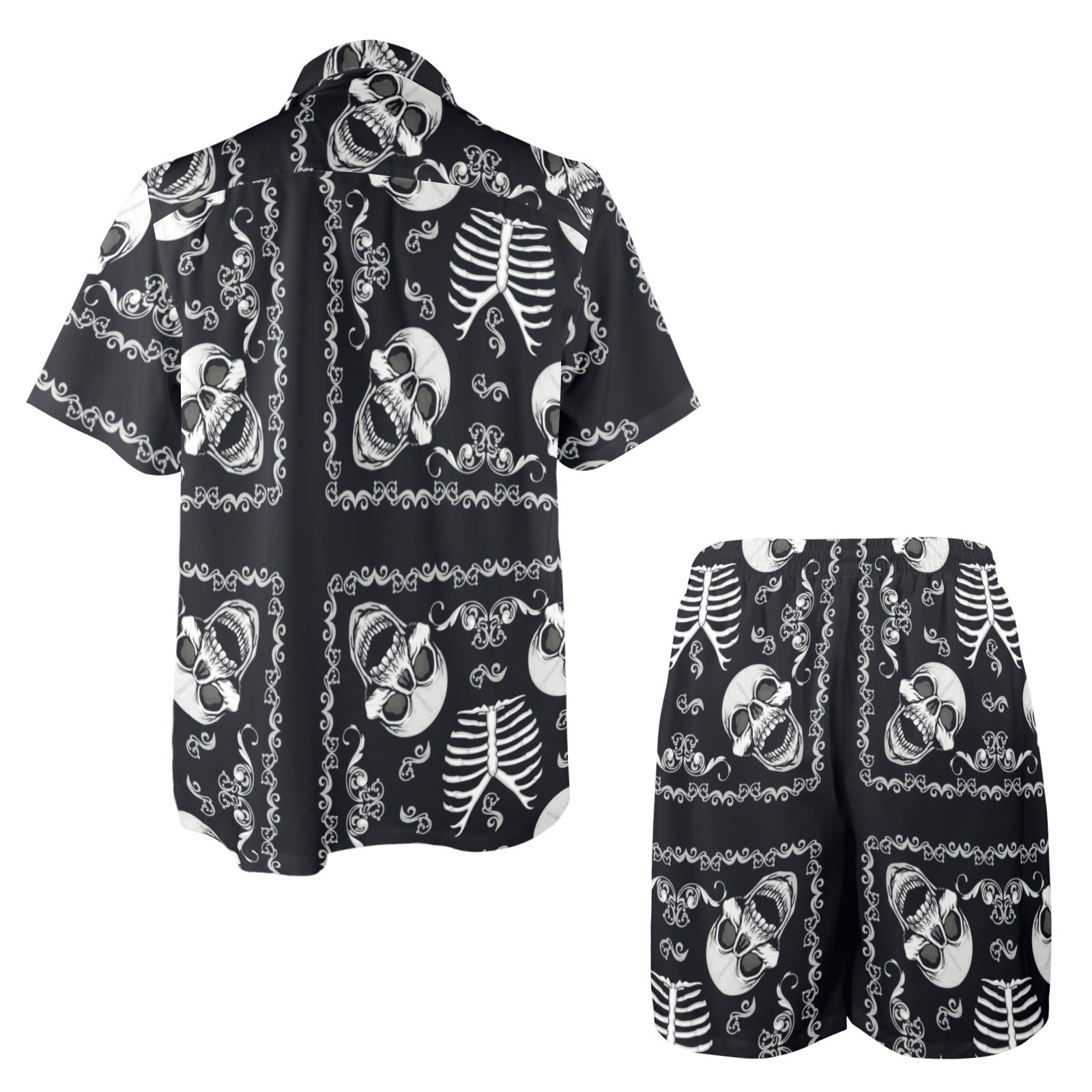 Bandana Skull Black White Print Design LKS306 Men's Beach Shirt and Shorts Set