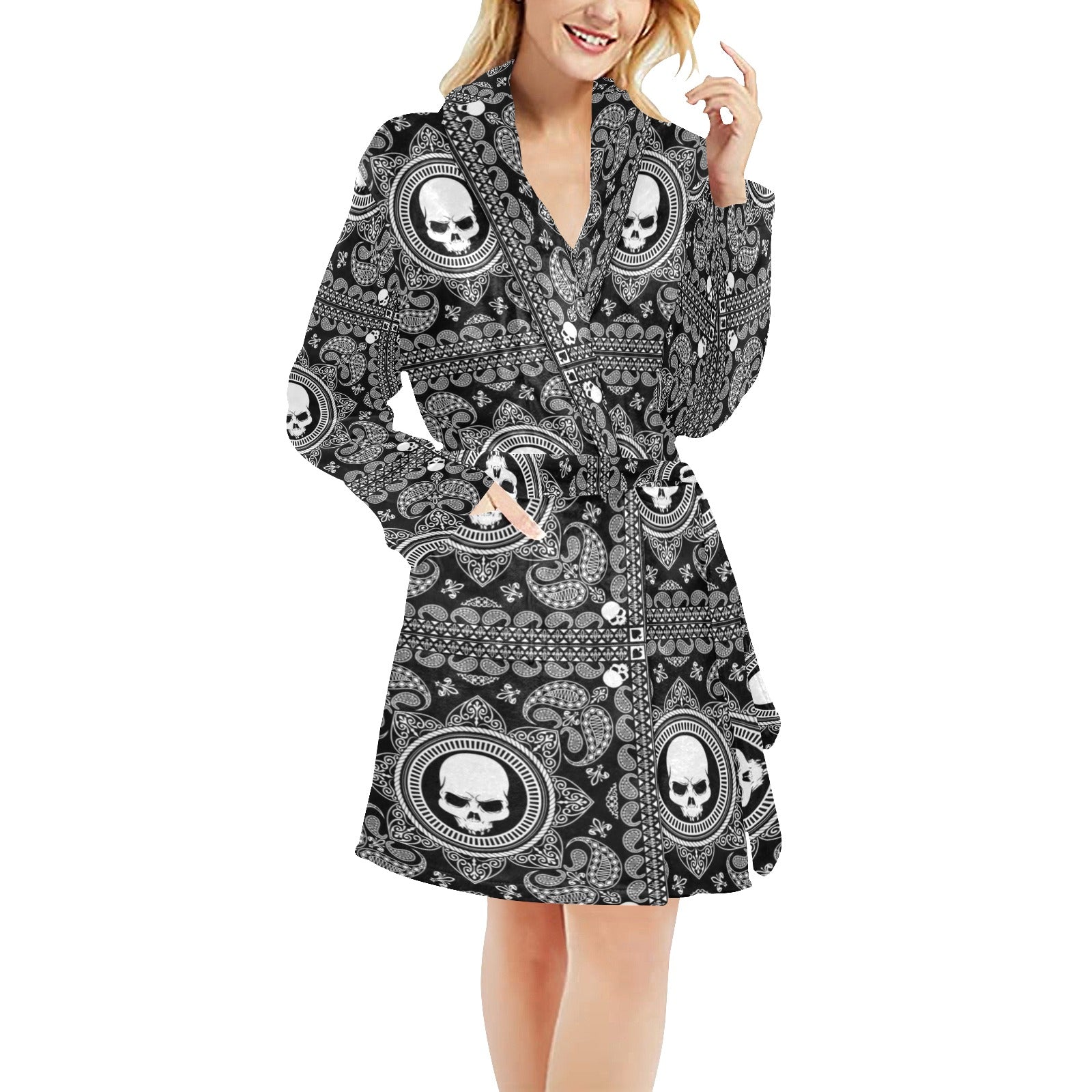 Bandana Skull Print Design LKS303 Women's Fleece Robe