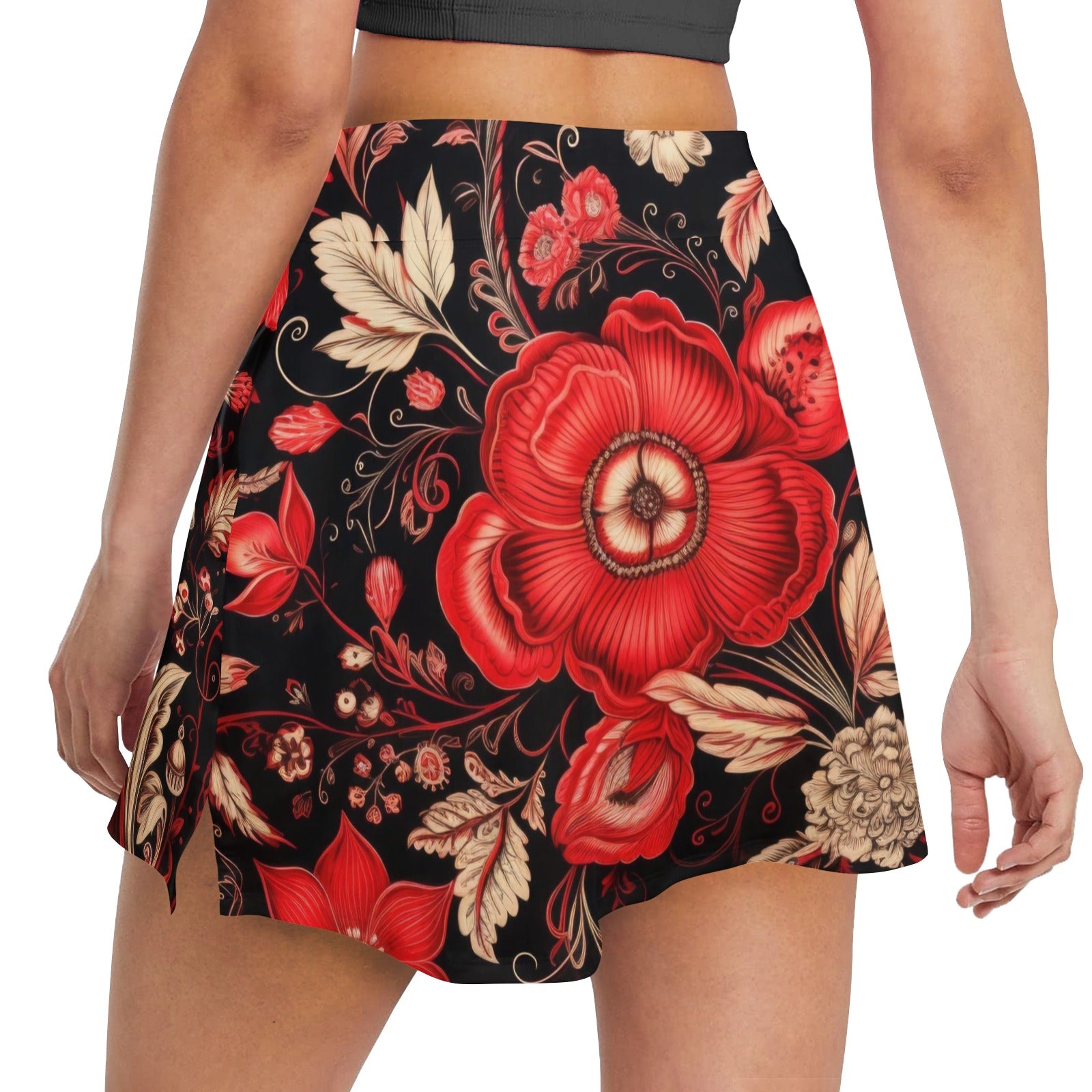 Bandana Style with Red Hibiscus Women's Golf Skirt with Pocket