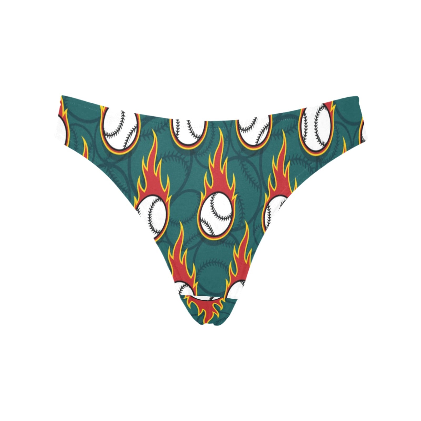 Baseball Fire Print Pattern Women's Thongsis custom-made-to-order and handcrafted to the highest quality standards.