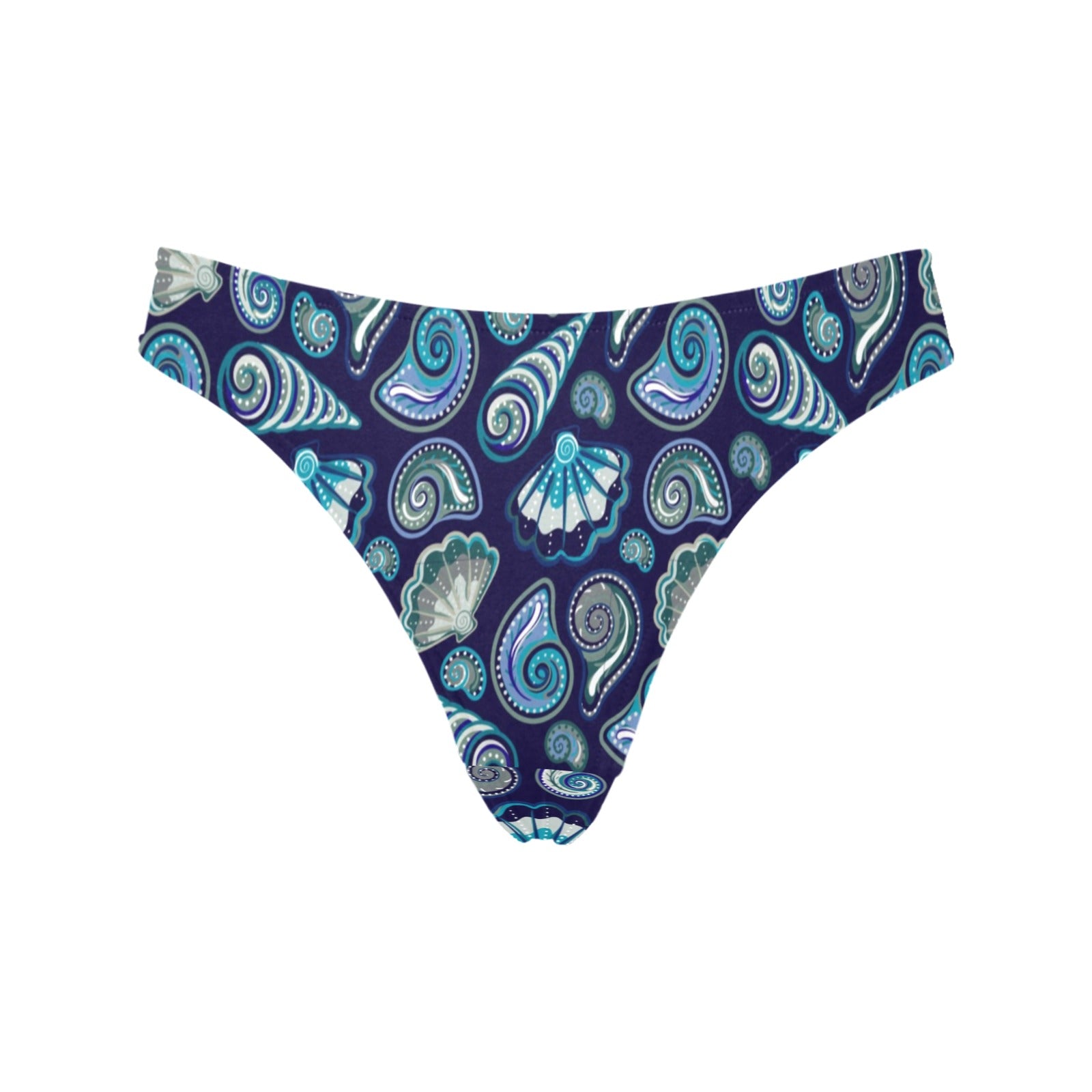 Beach Seashell Blue Print Women's Thongsis custom-made-to-order and handcrafted to the highest quality standards.