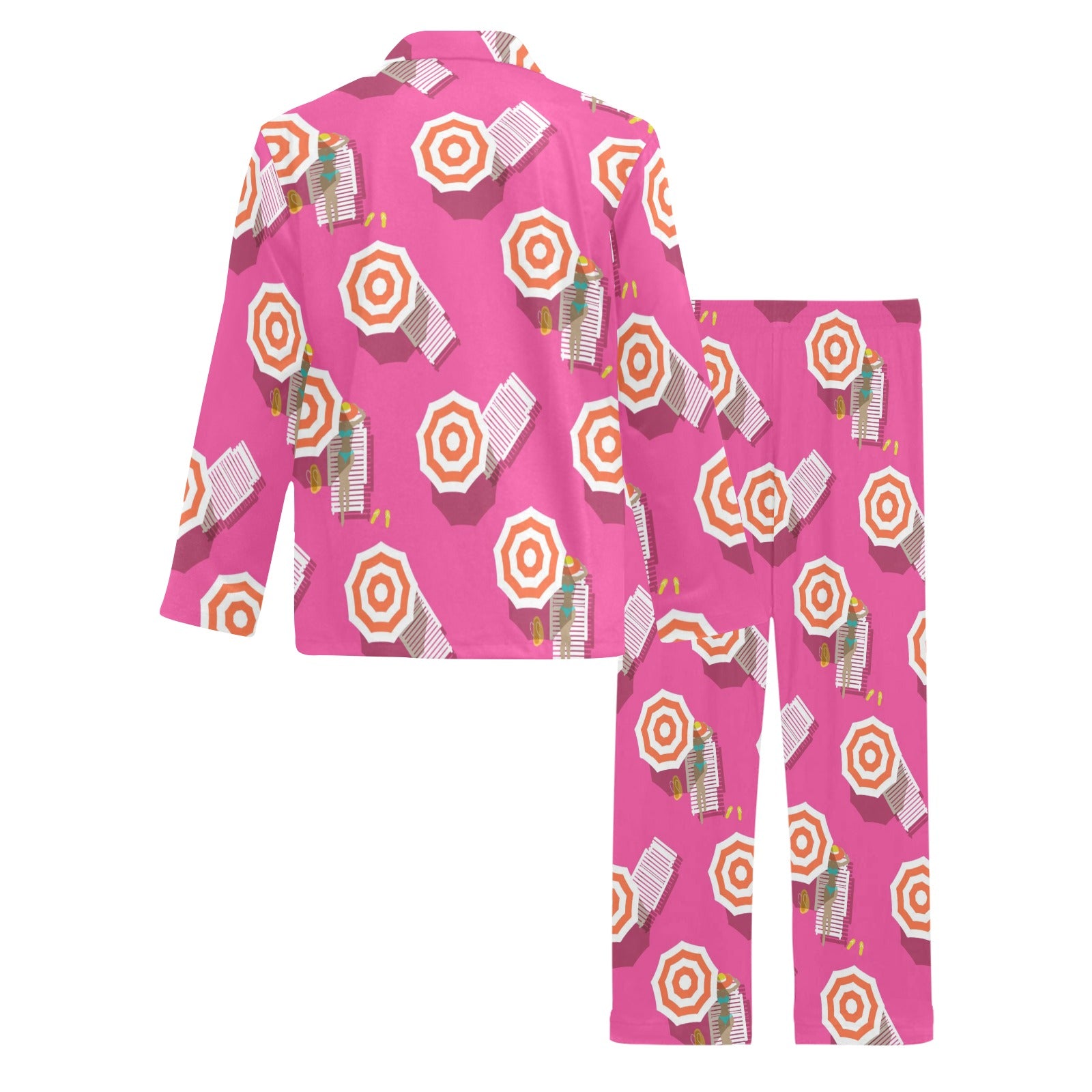 Beach Top View Umbrella Theme Men's Long Pajama Set