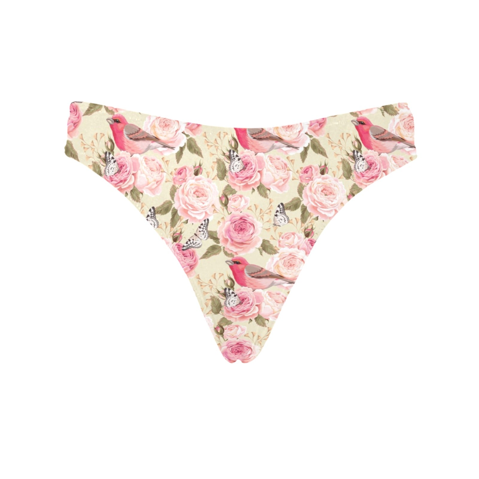 Bird Butterfly Pink Flower Print Pattern Women's Thongsis custom-made-to-order and handcrafted to the highest quality standards.