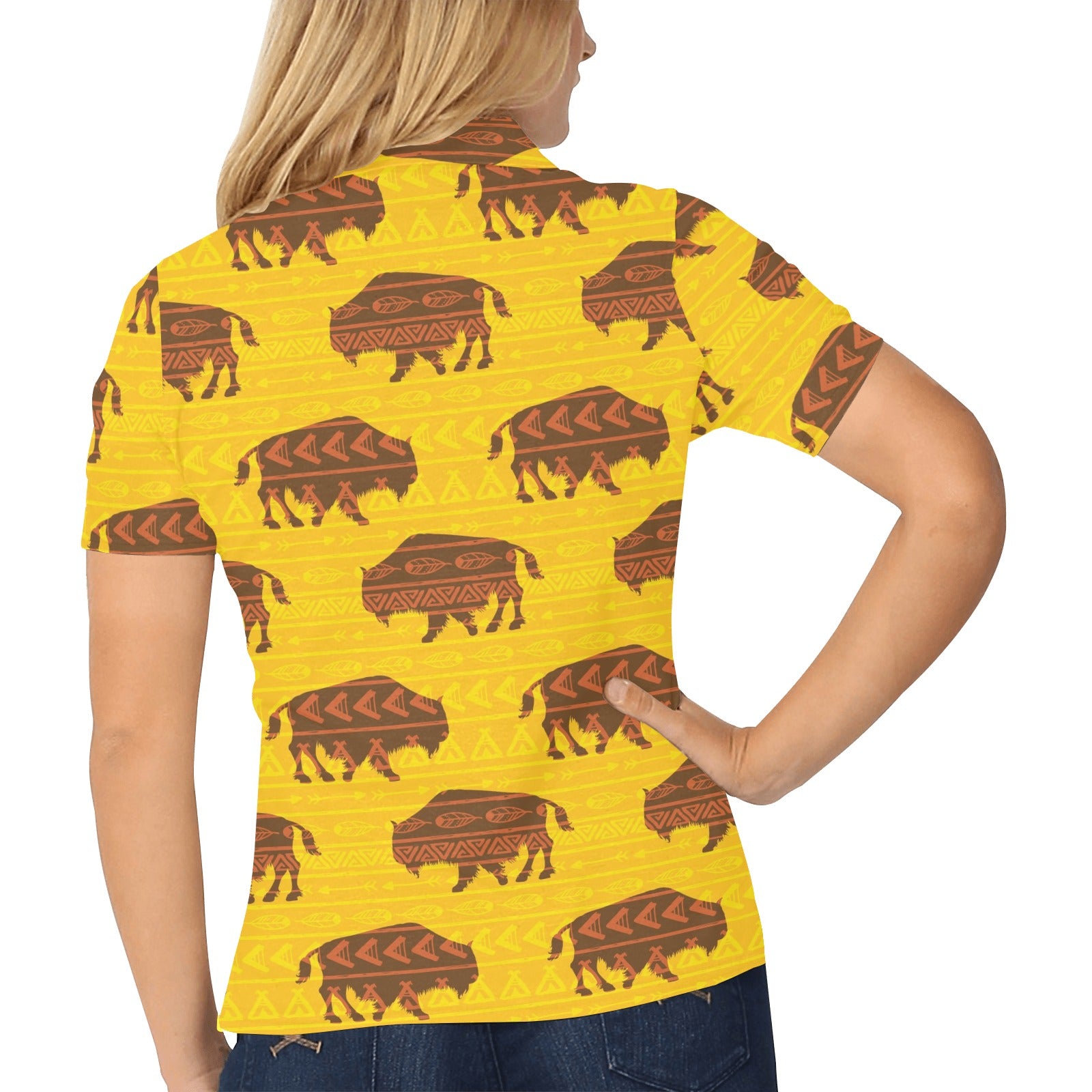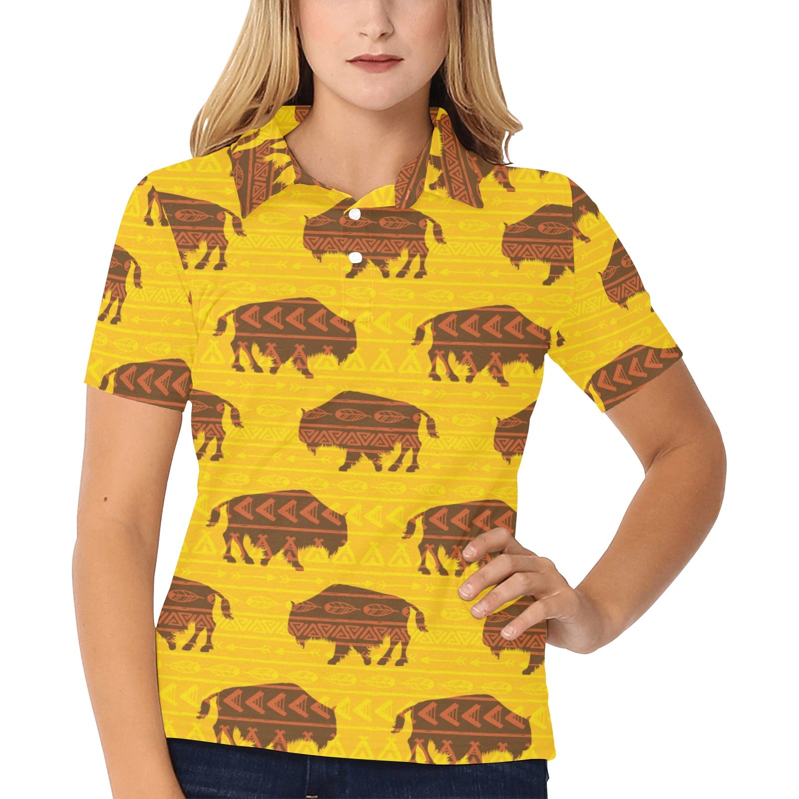Bison Native Pattern Print Design 01 Women's Polo Shirt