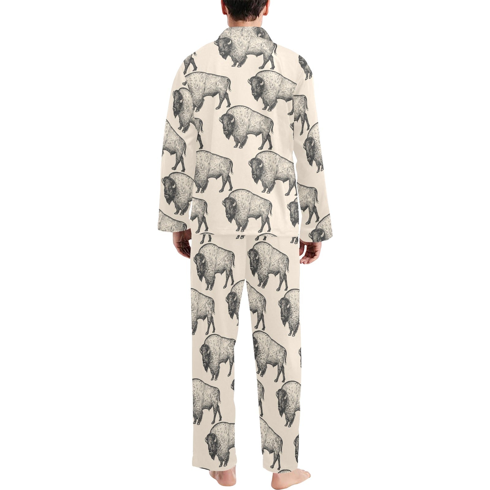 Bison Pattern Print Design 02 Men's Long Pajama Set custom-made-to-order and handcrafted to the highest quality standards.
