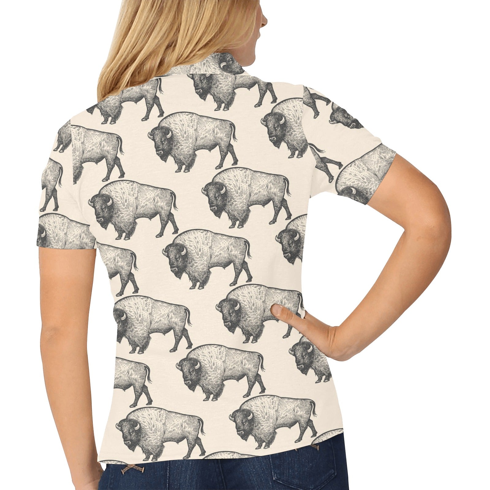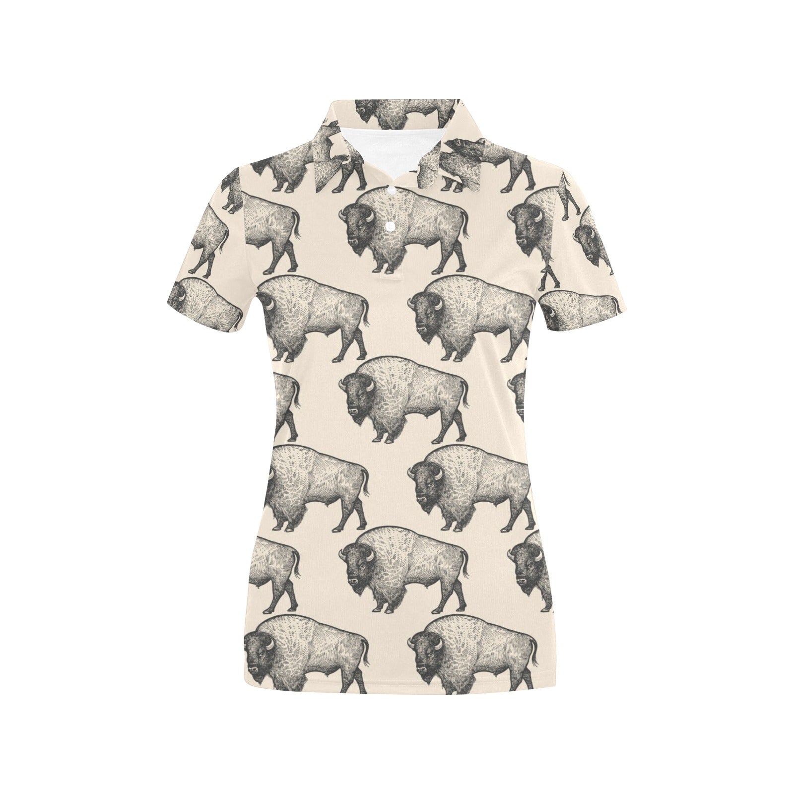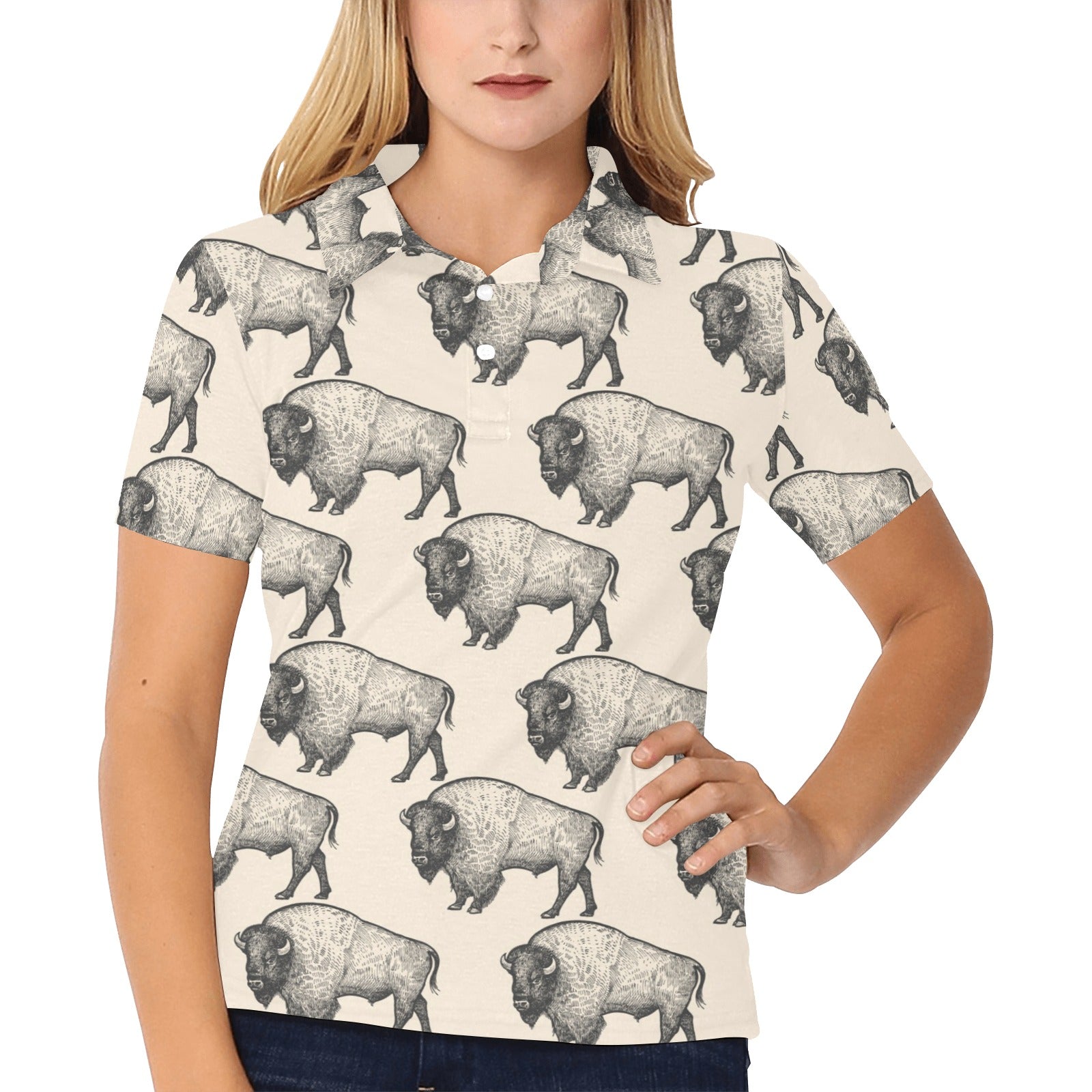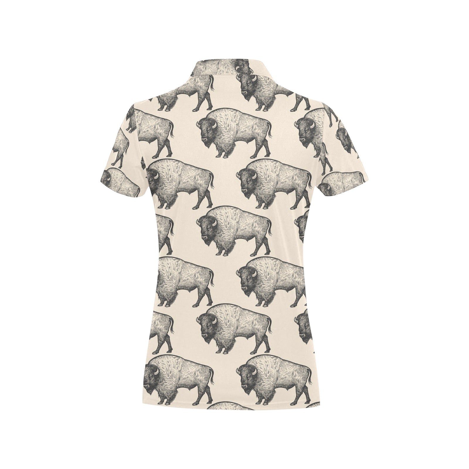 Bison Pattern Print Design 02 Women's Polo Shirt