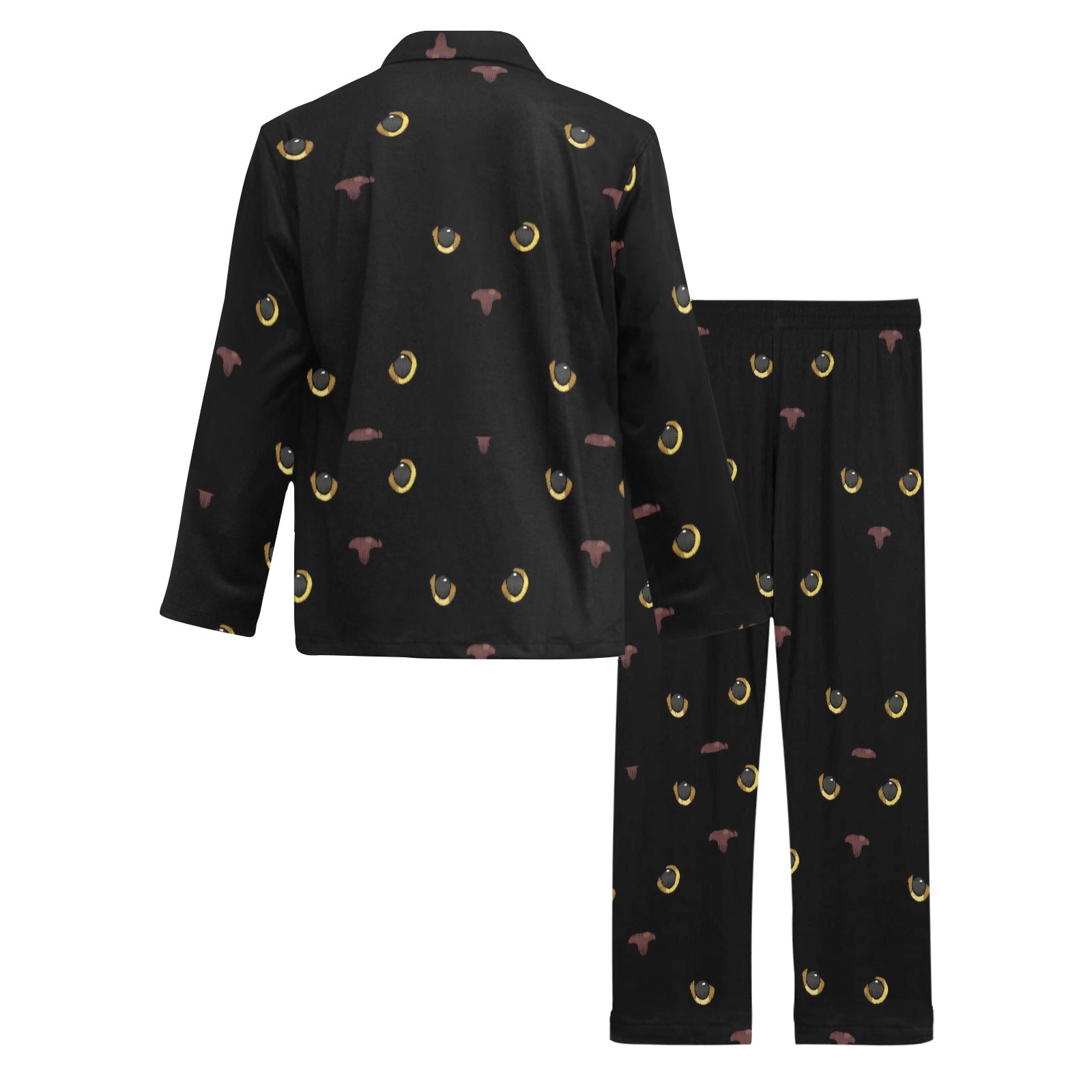 Black Cat Face Print Pattern Men's Long Pajama Set custom-made-to-order and handcrafted to the highest quality standards.