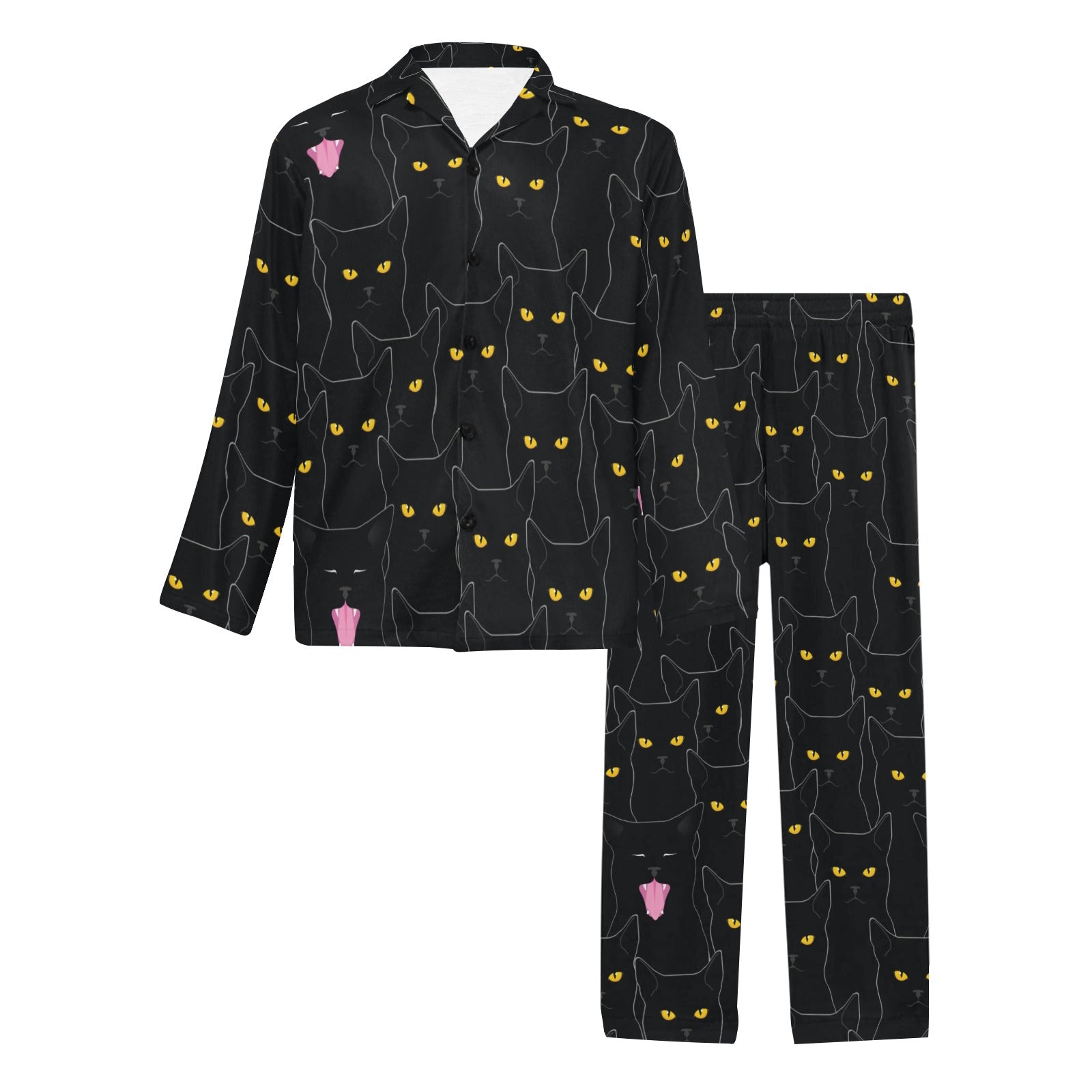 Black Cat Yellow Eyes Print Pattern Men's Long Pajama Set