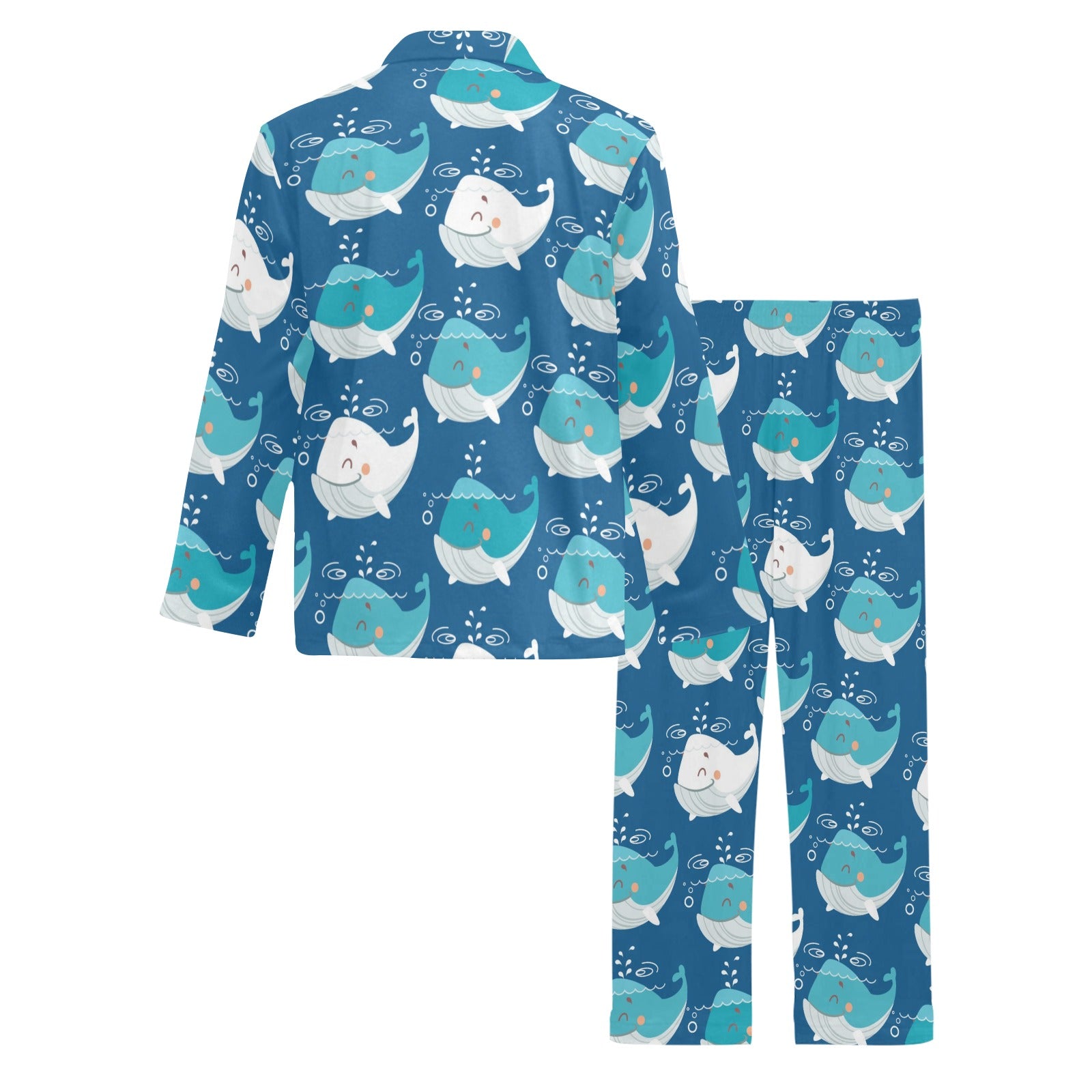 Blue Whale Pattern Print Design 01 Men's Long Pajama Set custom-made-to-order and handcrafted to the highest quality standards.