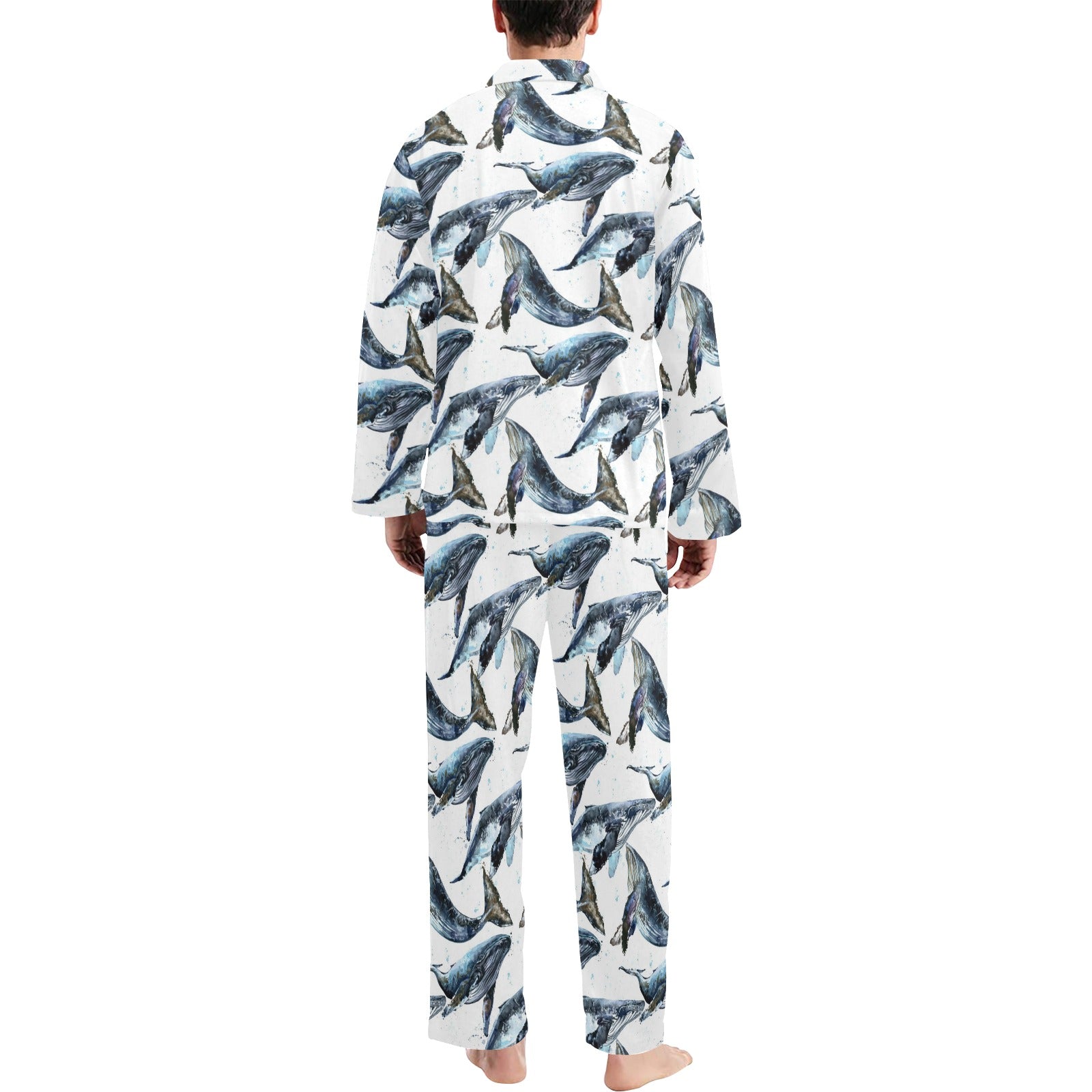 Blue Whale Pattern Print Design 03 Men's Long Pajama Set custom-made-to-order and handcrafted to the highest quality standards.