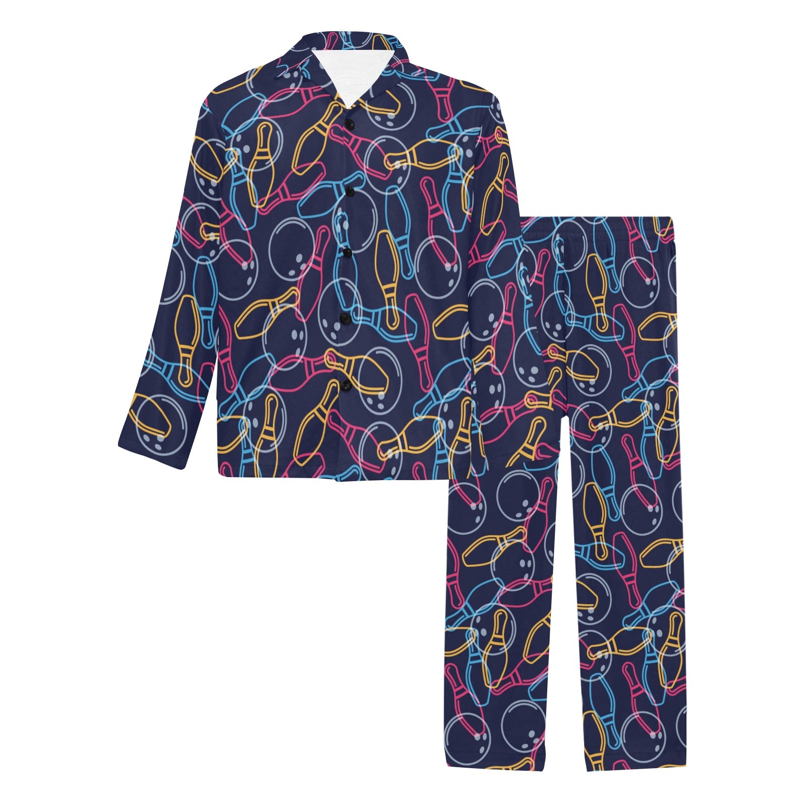 Bowling Pattern Print Design 07 Men's Long Pajama Set custom-made-to-order and handcrafted to the highest quality standards.