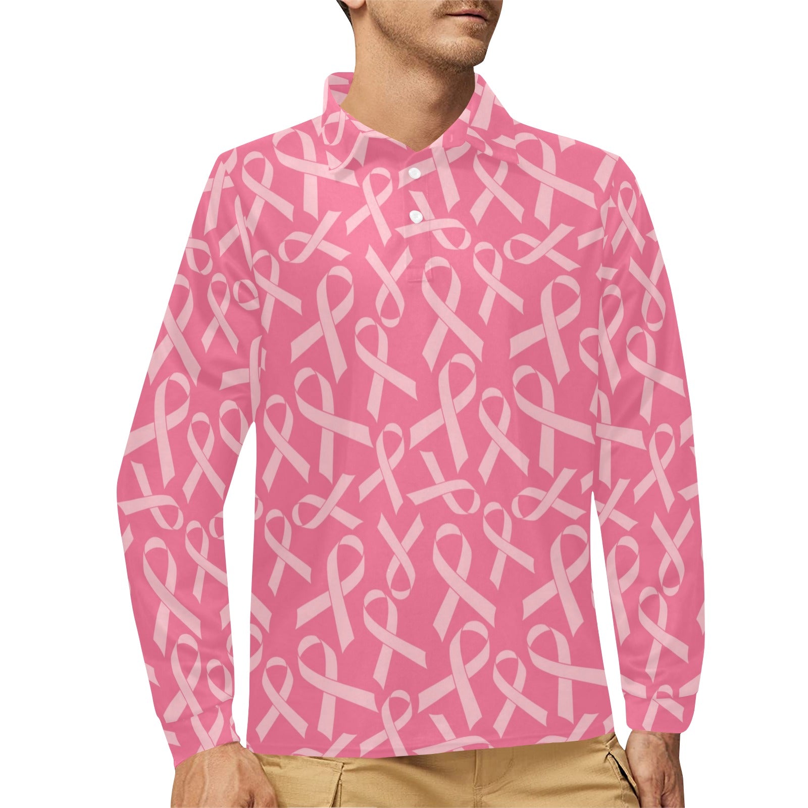 Breast Cancer Awareness Themed Long Sleeve Polo Shirt For Men's custom-made-to-order and handcrafted to the highest quality standards.