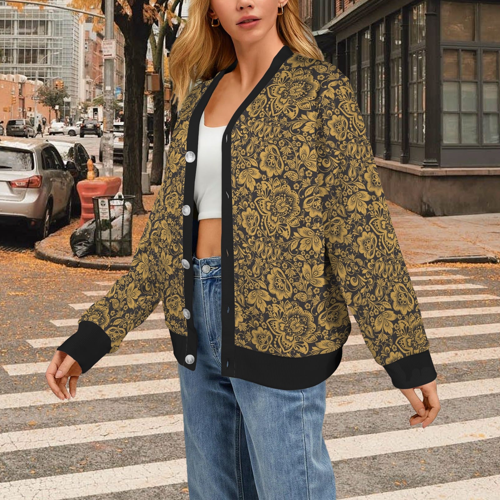 Brocade Gold Pattern Print Design 01 Women's Cardigan made-to-order and handcrafted to the highest quality standards.