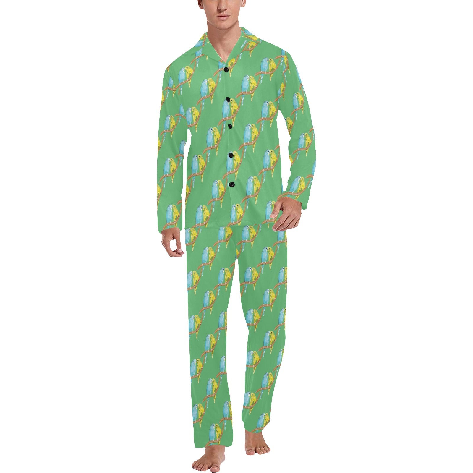 Budgerigar Pattern Print Design 01 Men's Long Pajama Set Made to Order Item. It is hand-cut and sewn just for your order! This process starts as soon as your order is placed and may have a processing time of 5-9 business days before it ships.