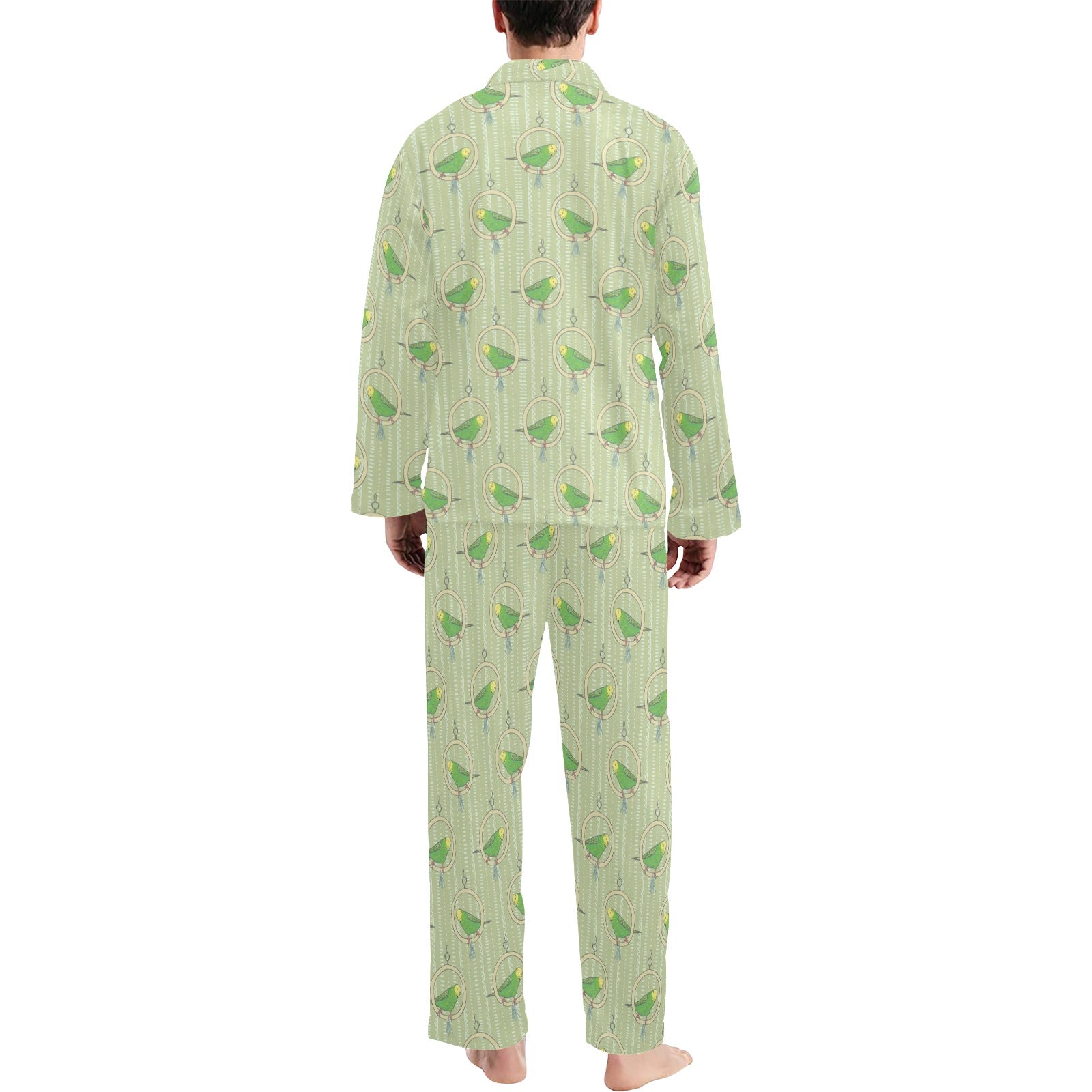 Budgerigar Pattern Print Design 02 Men's Long Pajama Set Made to Order Item. It is hand-cut and sewn just for your order! This process starts as soon as your order is placed and may have a processing time of 5-9 business days before it ships.