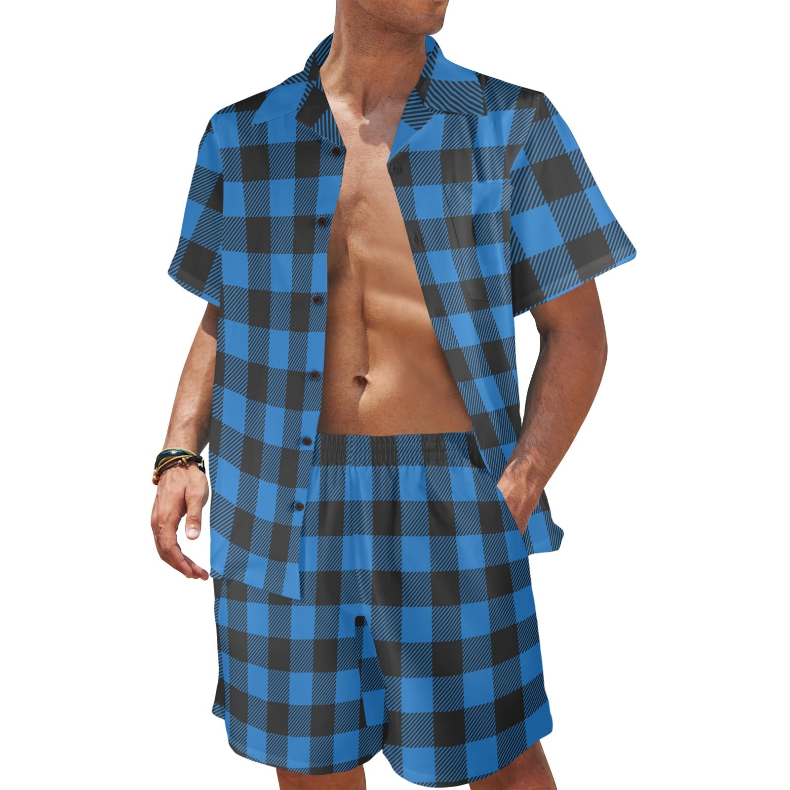 Buffalo check Blue Pattern Print Design 03 Men's Beach Shirt and Shorts Set. It is hand-cut and sewn just for your order! This process starts as soon as your order is placed and may have a processing time of 5-9 business days before it ships.