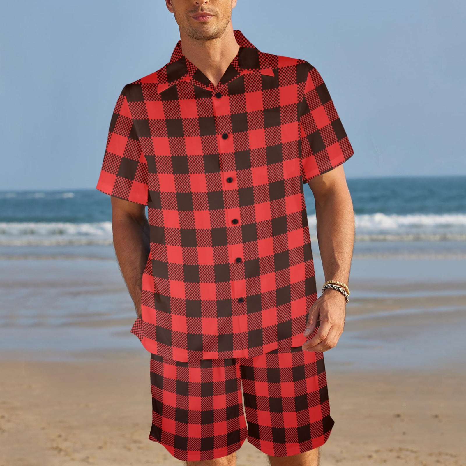Buffalo check Red Pattern Print Design 05 Men's Beach Shirt and Shorts Set. It is hand-cut and sewn just for your order! This process starts as soon as your order is placed and may have a processing time of 5-9 business days before it ships.
