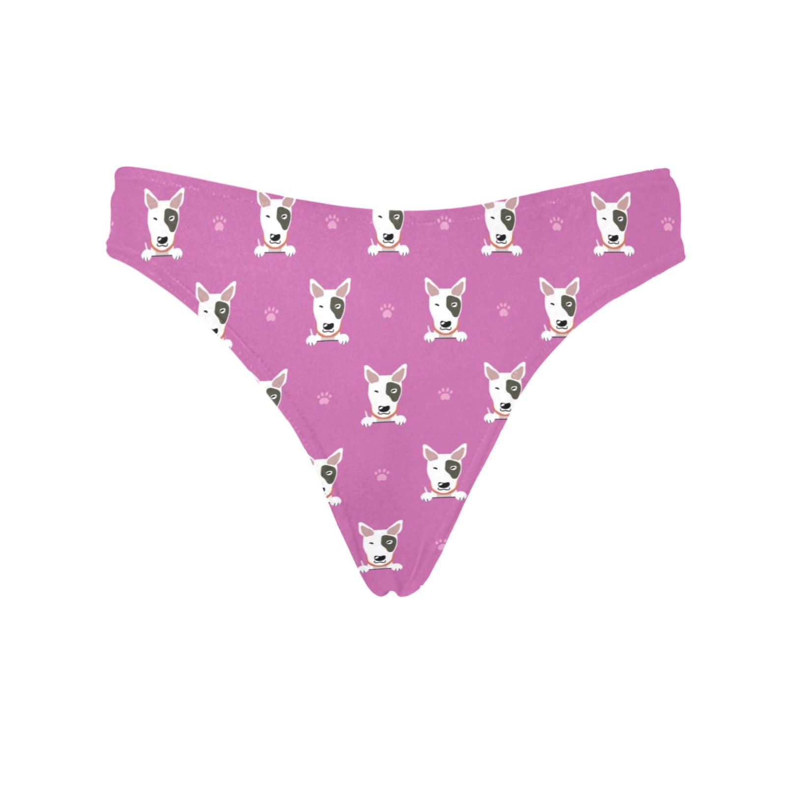 Bull Terrier Happy Print Pattern Women's Thongsis custom-made-to-order and handcrafted to the highest quality standards.
