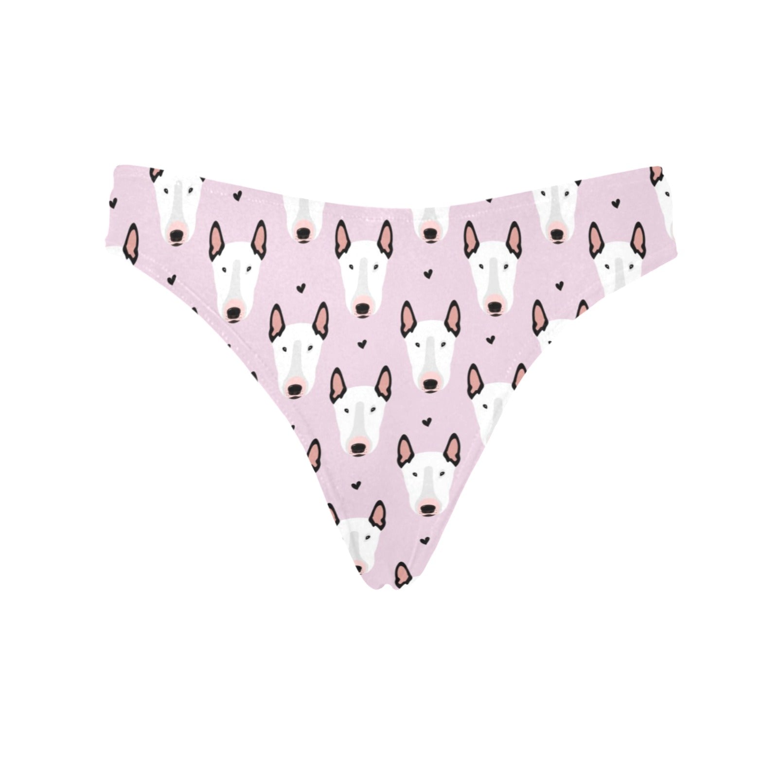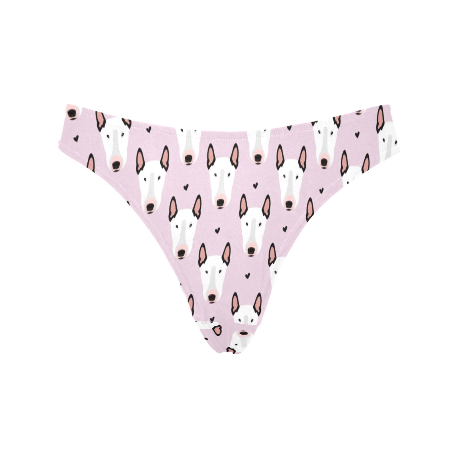 Bull Terrier Pink Print Pattern Women's Thongsis custom-made-to-order and handcrafted to the highest quality standards.