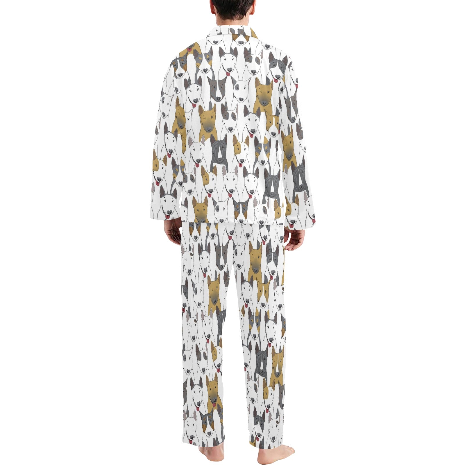Bull Terriers Pattern Print Design 03 Men's Long Pajama Set Made to Order Item. It is hand-cut and sewn just for your order! This process starts as soon as your order is placed and may have a processing time of 5-9 business days before it ships.