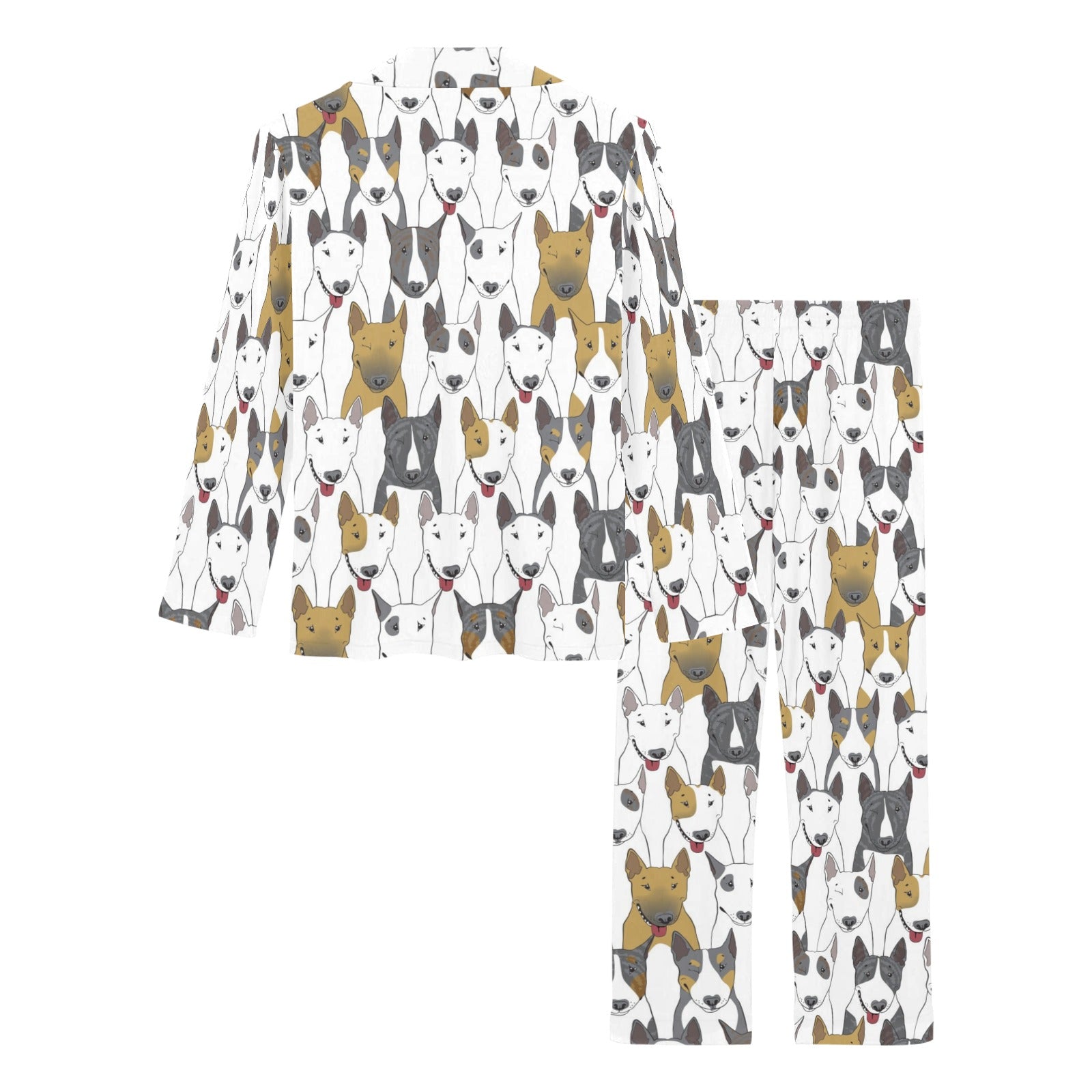 Bull Terriers Pattern Print Design 03 Women's Long Pajama Set Made to Order Item. It is hand-cut and sewn just for your order! This process starts as soon as your order is placed and may have a processing time of 5-9 business days before it ships.