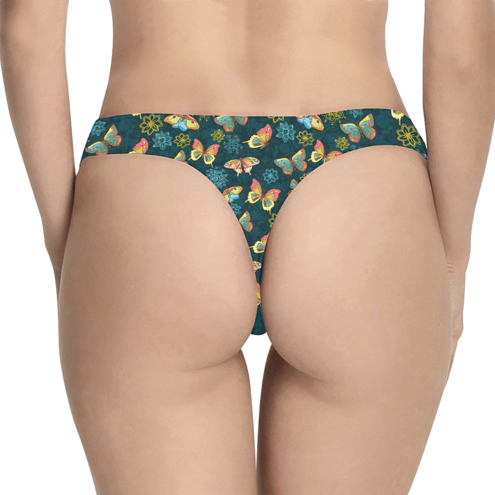 Butterfly Hand Draw Print Pattern Women's Thongsis custom-made-to-order and handcrafted to the highest quality standards.