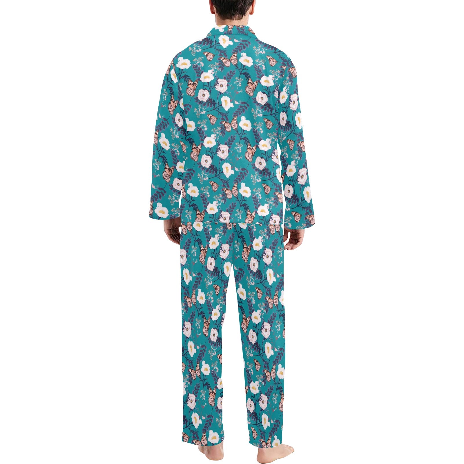 Butterfly Pattern Print Design 012 Men's Long Pajama Set Made to Order Item. It is hand-cut and sewn just for your order! This process starts as soon as your order is placed and may have a processing time of 5-9 business days before it ships.