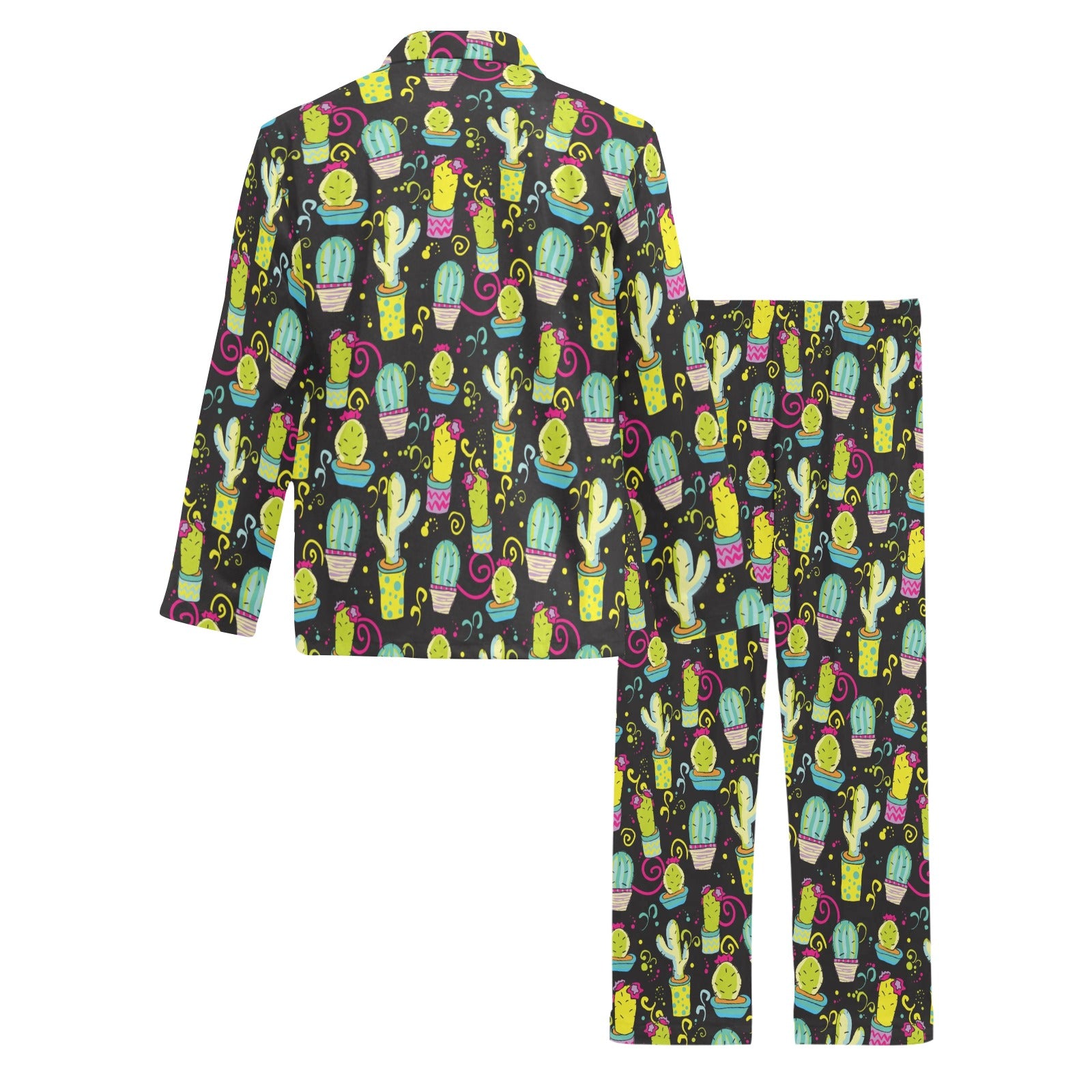 Cactus Neon Style Print Pattern Men's Long Pajama Set custom-made-to-order and handcrafted to the highest quality standards.