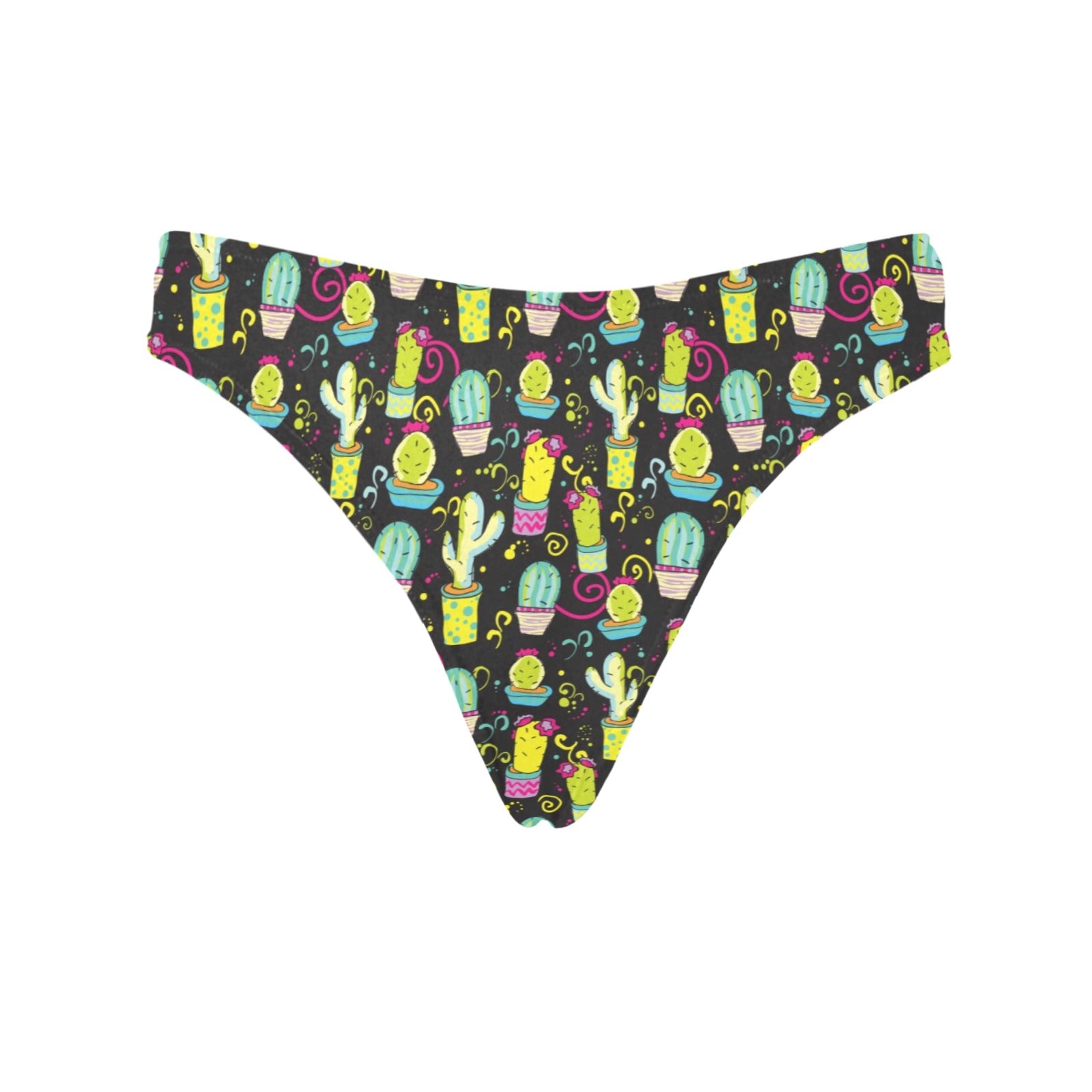 Cactus Neon Style Print Pattern Women's Thongsis custom-made-to-order and handcrafted to the highest quality standards.