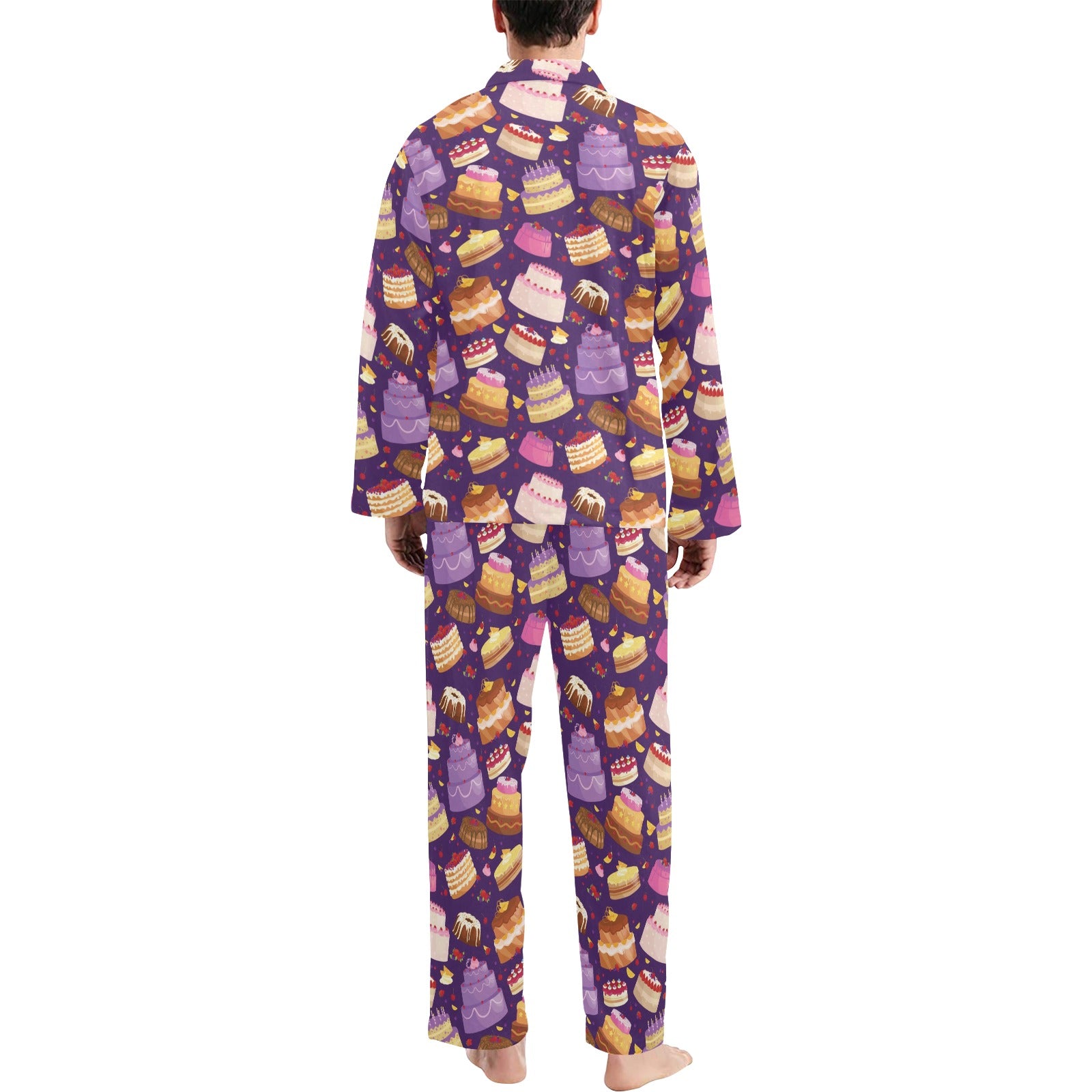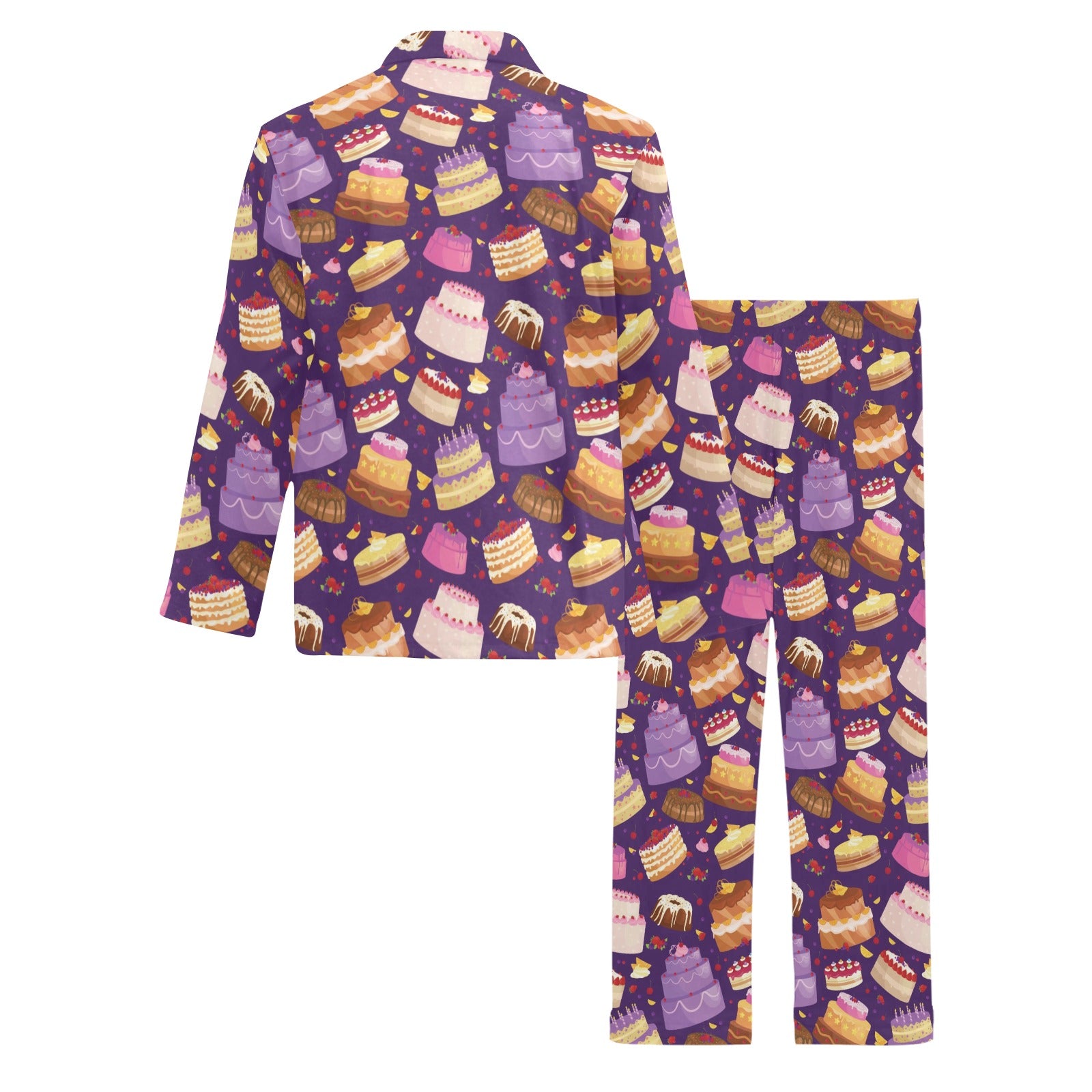 Cake Pattern Print Design 05 Men's Long Pajama Set Made to Order Item. It is hand-cut and sewn just for your order! This process starts as soon as your order is placed and may have a processing time of 5-9 business days before it ships.